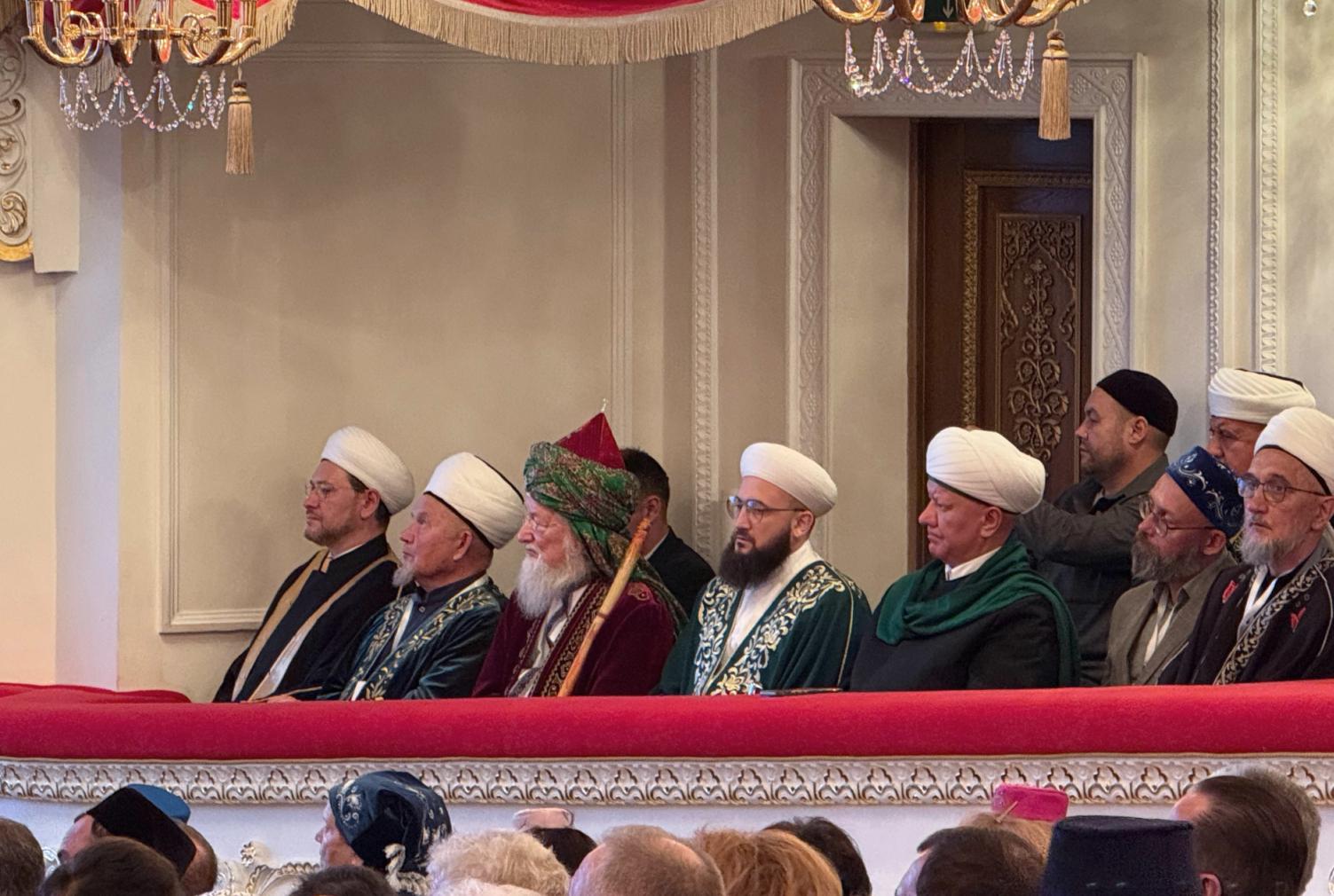 Сегодня в Татарском государственном академическом театре оперы и балета имени М.Джалиля состоялось пленарное заседание, в котором приняли участие: Раис РТ Рустам Минниханов; Государственный советник РТ Минтимер Шаймиев; заместитель Премьер-министра РТ, председатель Национального совета Всемирного конгресса татар Василь Шайхразиев; Шейх-уль-Ислам, Верховный муфтий, Председатель ЦДУМ России Талгат Сафа Таджуддин; председатель ДУМ РТ, муфтий Камиль Самигуллин и другие почетные гости.
