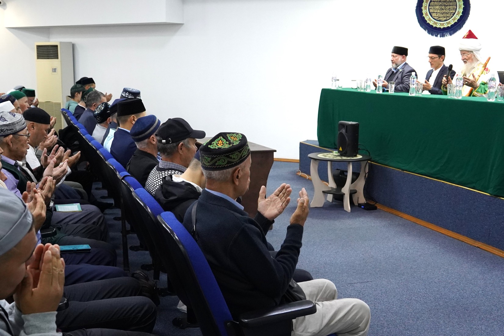 В президиуме торжественного собрания – Шейх-уль-Ислам, Верховный муфтий, Председатель ЦДУМ России Талгат Сафа Таджуддин; ректор РИУ ЦДУМ России Гумар Таджуддинов; проректор по научной работе РИУ ЦДУМ России Руслан Саяхов; проректор по учебной работе РИУ ЦДУМ России Тимербулат Идиятуллин; руководитель отдела регистрации ЦДУМ России Мухаммад Минигалиев.