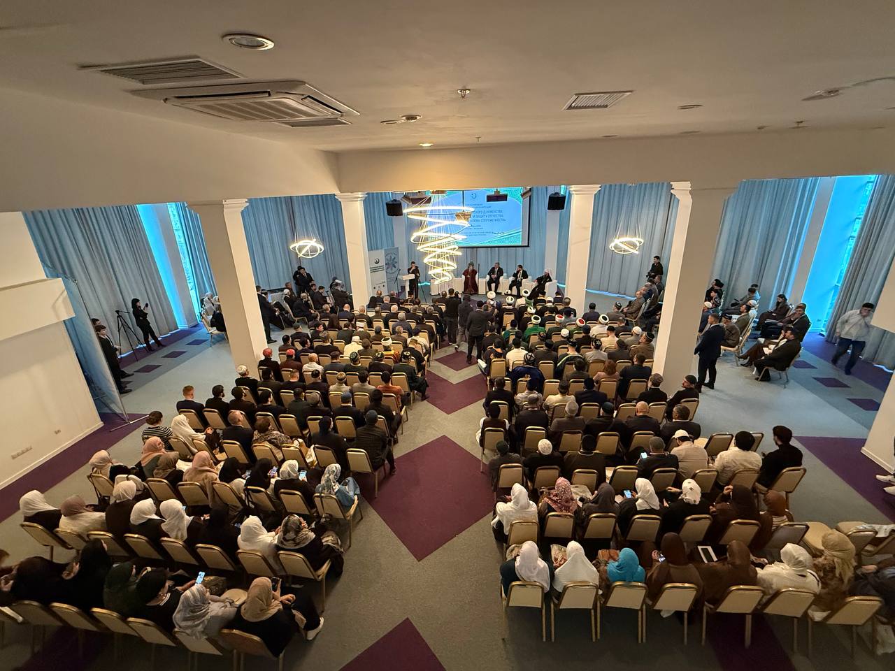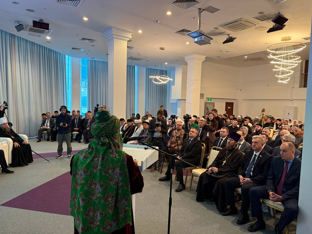 С приветственными словами выступили: Шейх-уль-Ислам, Верховный муфтий, Председатель ЦДУМ России Талгат Сафа Таджуддин; губернатор Астраханской области Игорь Бабушкин; руководитель Федерального агентства по делам национальностей Игорь Баринов; советник Департамента по взаимодействию с религиозными организациями Управления Президента РФ по внутренней политике Юлия Гусева; митрополит Астраханский и Камызякский Никон; председатель ДУМ ДНР Рашид Брагин; председатель ДУМ ЛНР, муфтий Мухаммад Гамбаров; представители духовных управлений Казахстана, Узбекистана, Кыргызстана.