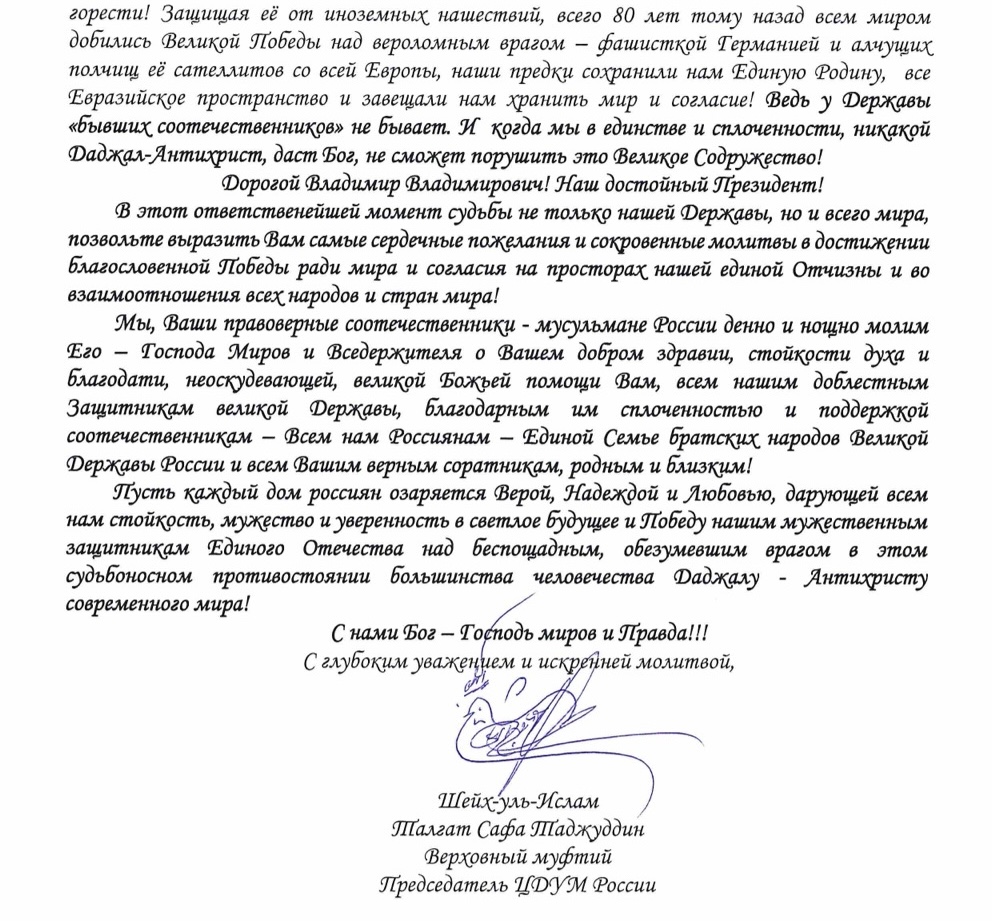 Новогоднее поздравление Президента РФ В.В.Путина от Верховного муфтия