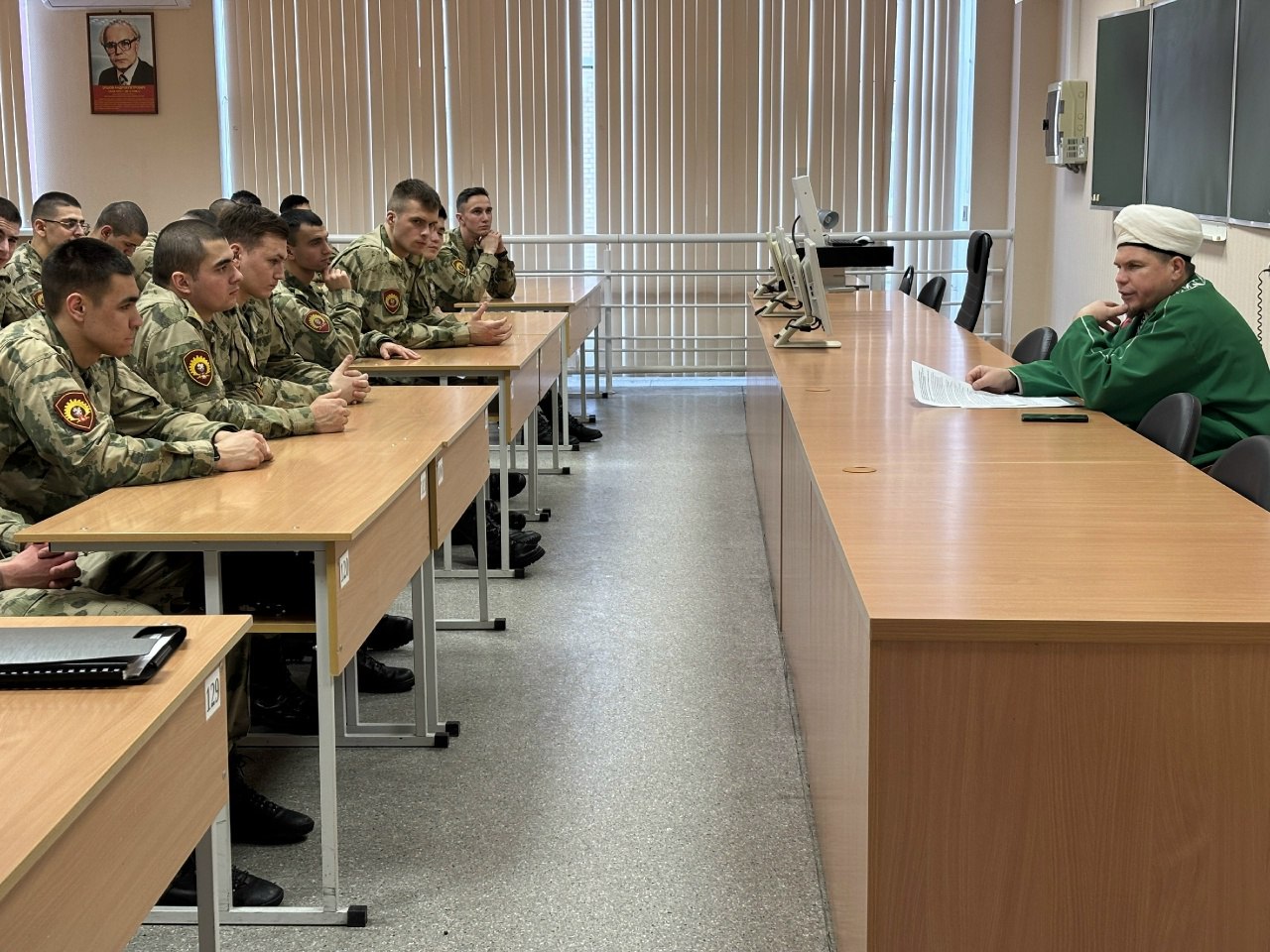 Имам Дамир-хазрат Сафаргалеев прочитал с курсантами утренний намаз, затем состоялась беседа о любви к Родине и о патриотизме, о достоинствах приближающегося священного месяца Рамазан.