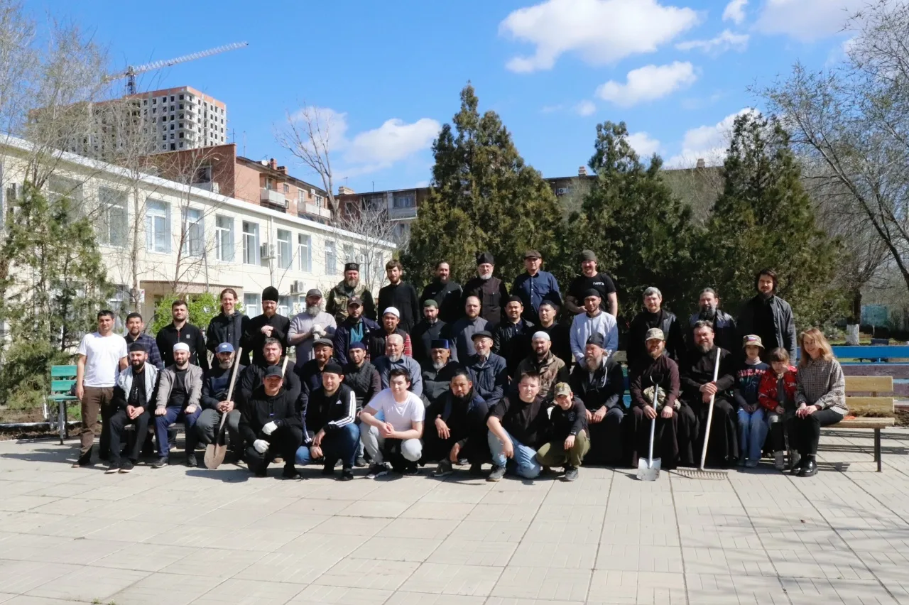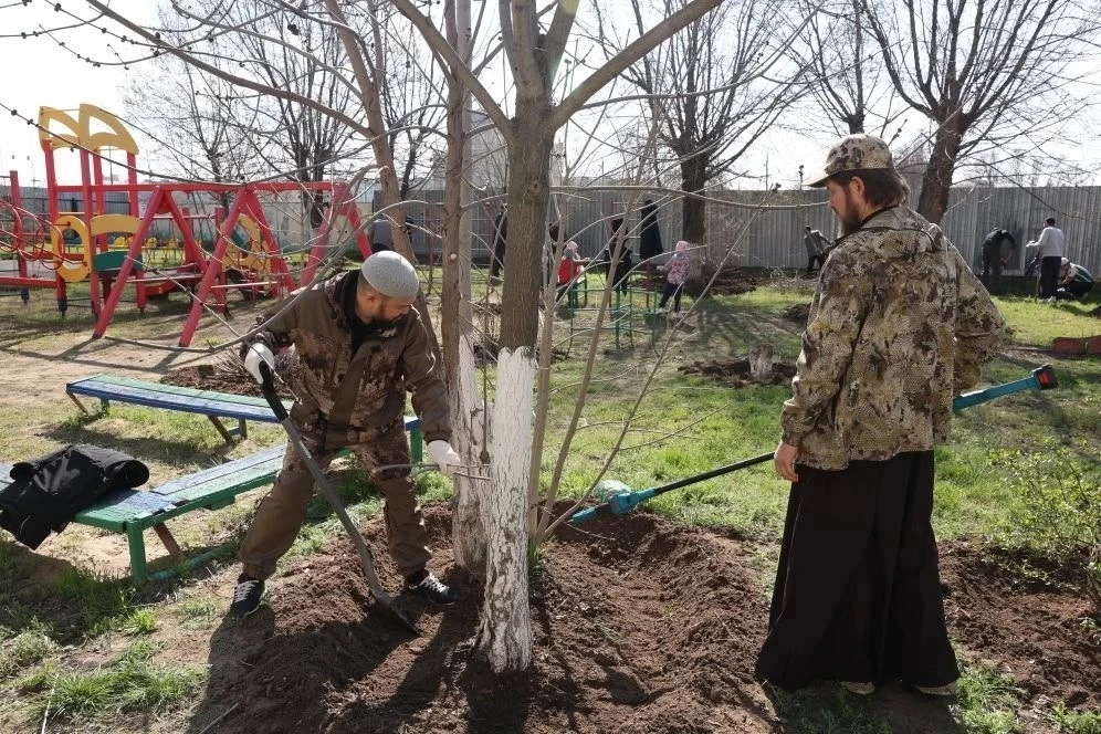 Мусульманские и православные священники, прихожане работали дружно и эффективно: привели в порядок кустарники, клумбы и газоны, очистили двор от мусора, побелили бордюры.