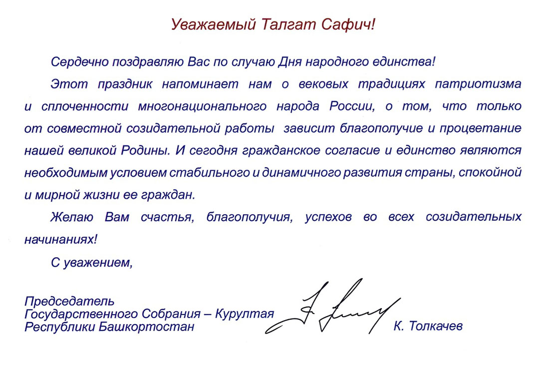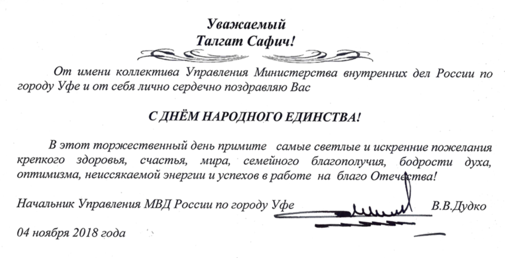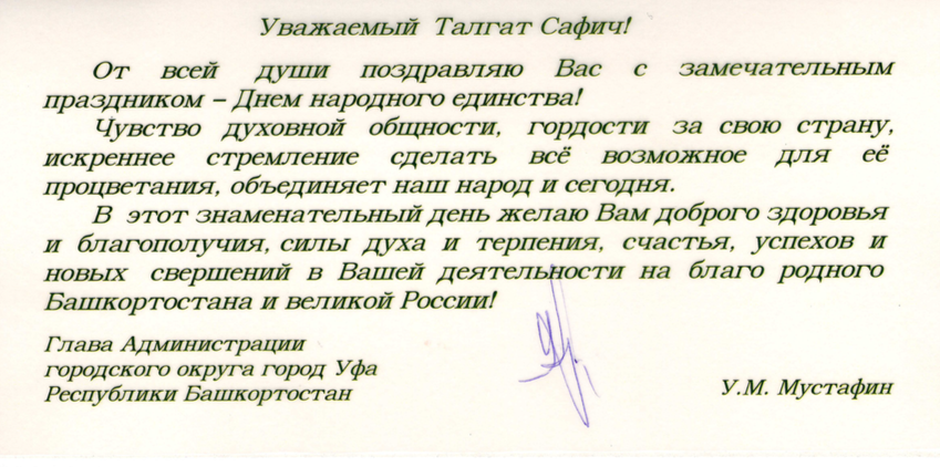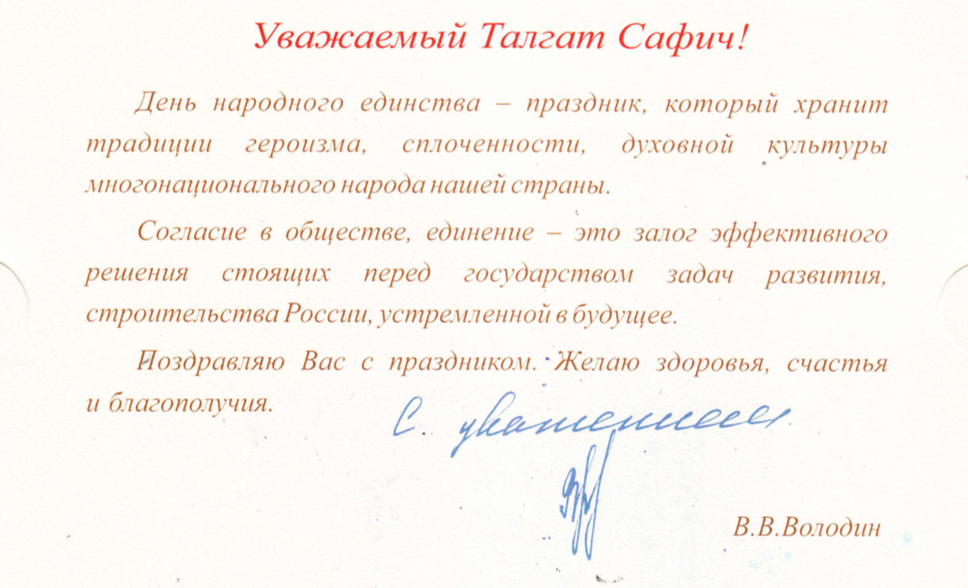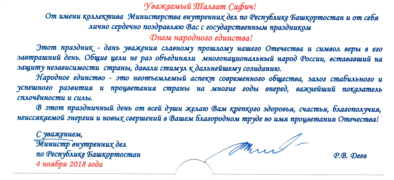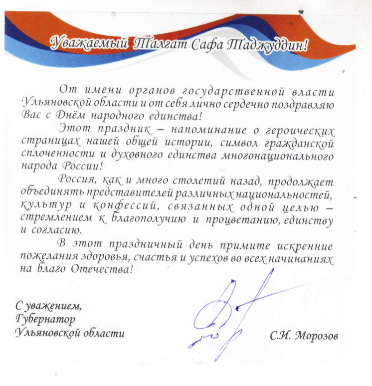 Поздравления Верховному муфтию по случаю Дня народного единства