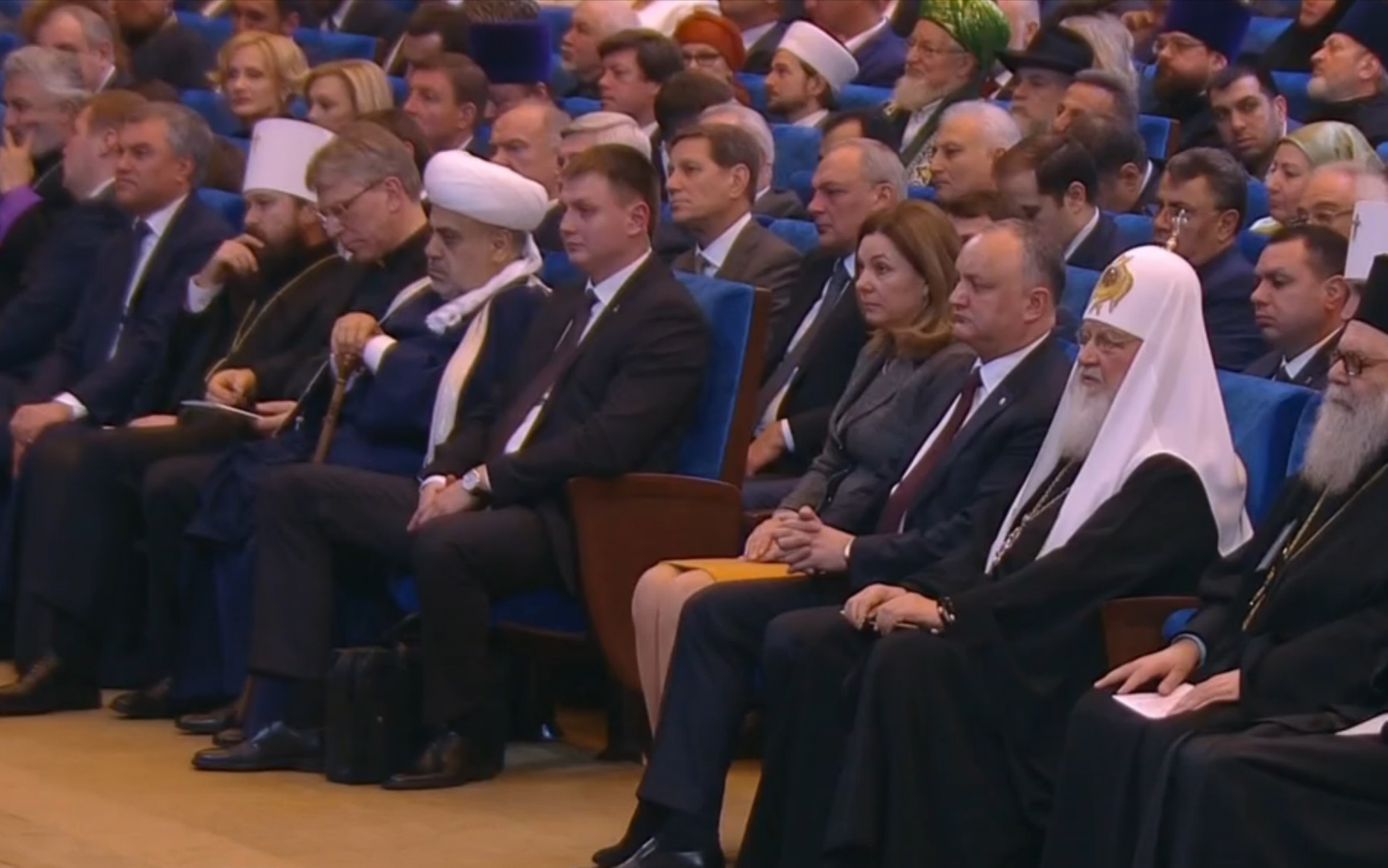 На праздничном мероприятии присутствовали: Президент Российской Федерации Владимир Путин; Председатель Государственной Думы Вячеслав Володин; Председатель Совета Федерации Валентина Матвиенко; Президент Республики Молдова Игорь Додон; предстоятели Поместных Православных Церквей; митрополиты и архиепископы, члены Священного Синода; руководители традиционных конфессий России и общественных объединений; парламентарии, дипломаты, деятели культуры. Старейшее духовное управление страны представляли: Шейх-уль-Ислам, Верховный муфтий, Председатель ЦДУМ России Талгат Сафа Таджуддин; руководитель Администрации ЦДУМ России, председатель РДУМ РБ, муфтий Мухаммад Таджуддинов; управляющая делами Московской резиденции ЦДУМ России Роза Багатова; полномочный представитель ЦДУМ России в Москве Шамиль Кадыргулов.