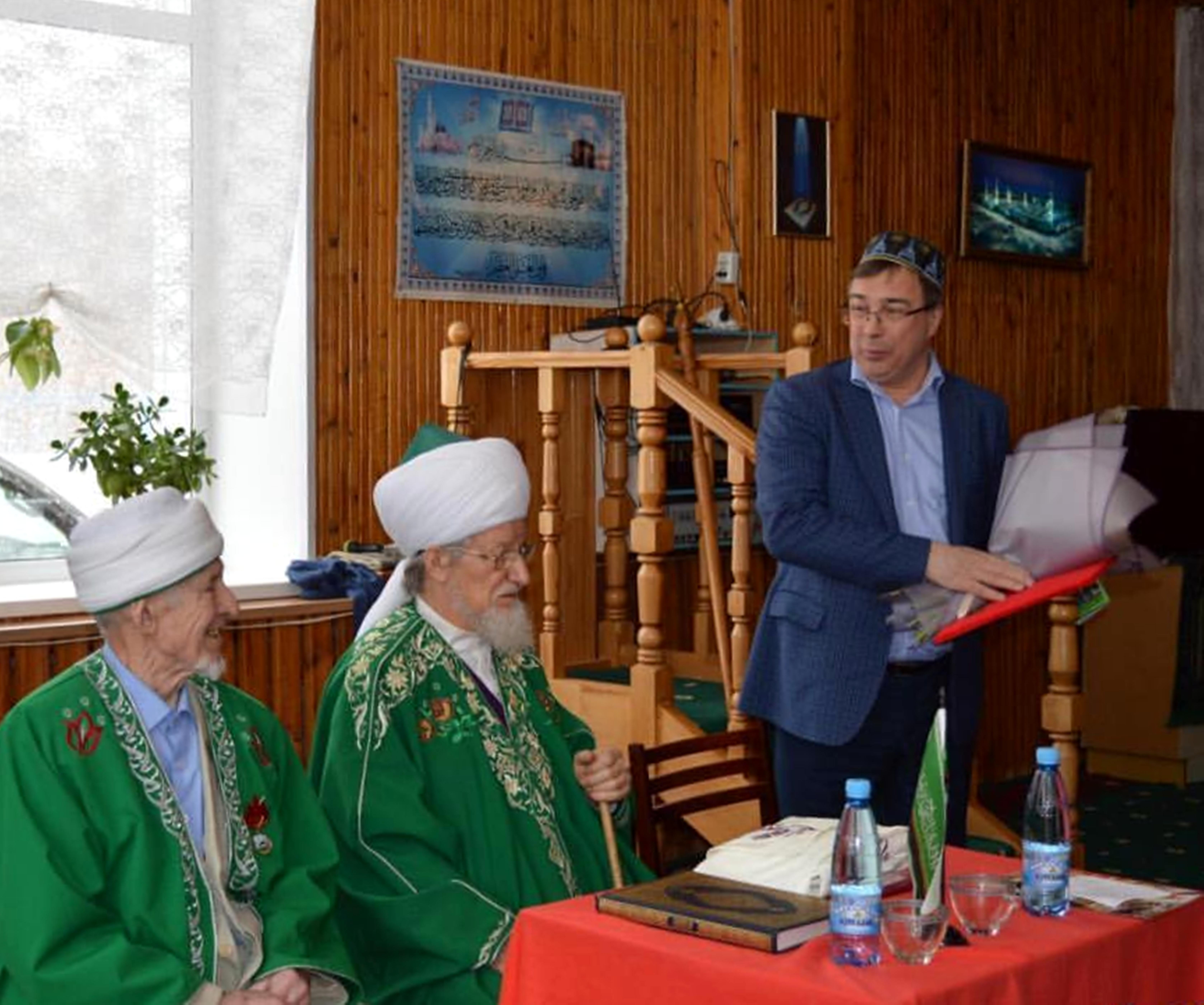 Почетным гостем праздника, на который собрались горожане, представители местной власти и депутаты, имамы, родные и друзья, стал Шейх-уль-Ислам, Верховный муфтий, Председатель ЦДУМ России Талгат Сафа Таджуддин. Глава российской уммы тепло поздравил героя дня, подарил нарядный чапан и вручил награду старейшего духовного управления страны – медаль «Аль-Игтисам» («Сплоченность»), степени «Абу Бакр радыяЛЛаhу’анhу». Вклад семьи Киреевых в духовно-нравственное возрождение общества отмечен уже не первый раз: несколько лет назад Ринат-хазрат был награжден медалью «Аль-Игтисам» степени «Талха бин Губайдилляh радыяЛЛаhу’анhу», а его супруга – «Аз-Зубайр бин Аль-Гауам радыяЛЛаhу’анhу». По традиции, Верховный муфтий прочел проповедь, в которой обратил внимание на то, что со временем уходят из памяти какие-то даты и события, но воспоминания о добрых делах человека должны остаться. И такой праздник как день рождения – это прекрасная возможность вспомнить все самые лучшие моменты жизни. Надо отметить, что биография юбиляра типична для многих советских людей, но по-своему уникальна. Его отец умер еще до рождения сына, и мама одна подняла и вырастила детей. Она же привила им уважение и любовь к религии, познакомила с основами Ислама. Служба в армии, работа на Севере, самоотверженный труд на заводе и одновременно искреннее стремление к новым знаниям – так по воле Всевышнего Ринат Хусаинович Киреев ступил на стезю священнослужителя. В день 80-летия он с удовольствием вспоминал годы, когда получал образование в Исламском институте имени Р.Фахретдинова (ныне Российский исламский университет ЦДУМ России), и благодарил своих учителей. Собравшиеся в мечети «Тан-Чулпан» рассказывали, как щедро делится своими знаниями Ринат-хазрат, и скольким людям он открыл красоту и великую мудрость Ислама.