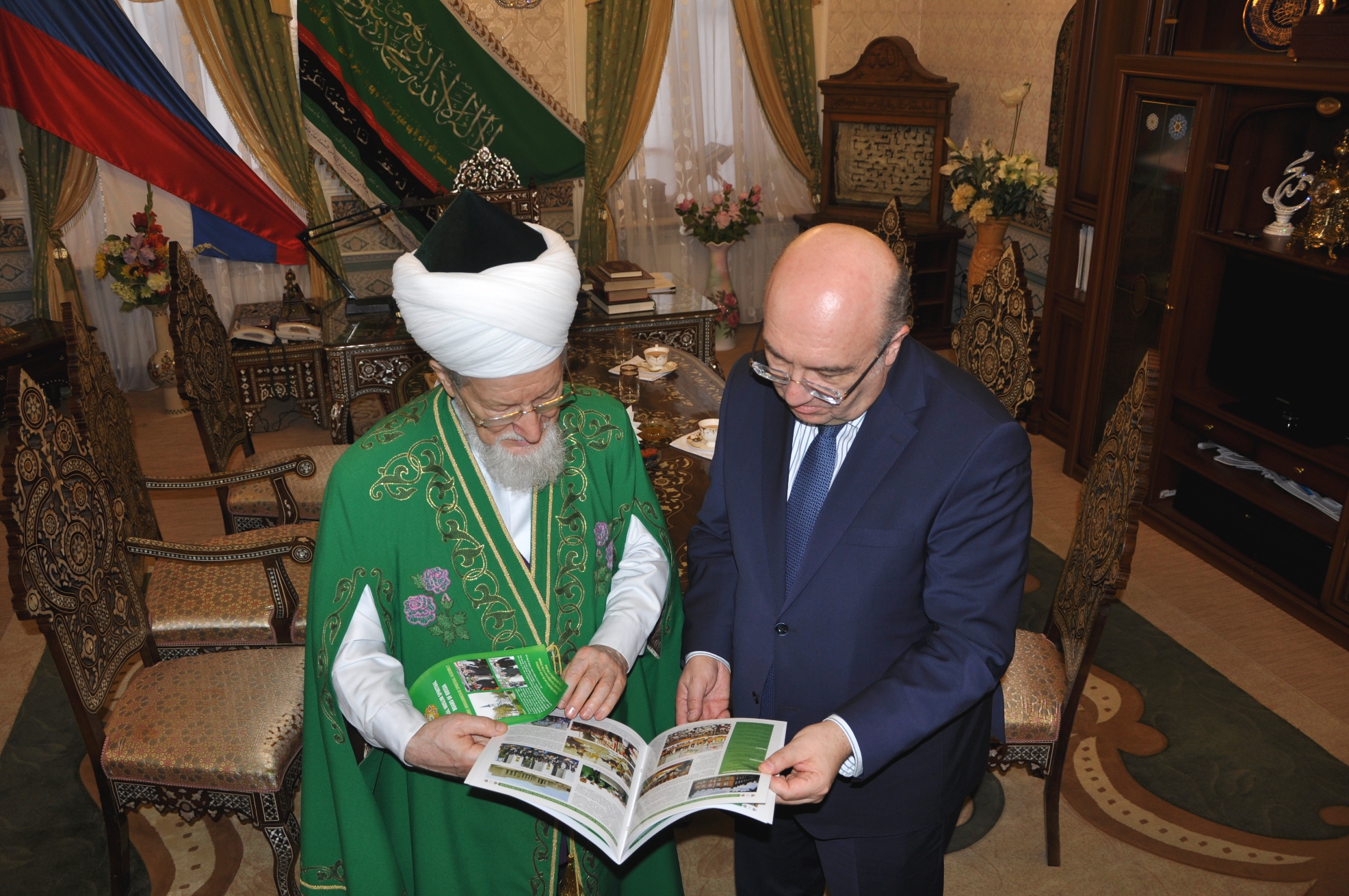 Шейх-уль-Ислам, Верховный муфтий, Председатель ЦДУМ России Талгат Сафа Таджуддин радостно приветствовал Мехмета Самсара и Генерального консула Турецкой Республики в г.Казань Ахмета Садыка Догана. Разговор шел не только о сроках окончания строительства комплекса, но и о тех проблемах, которые сегодня волнуют всех граждан мира. Турецкие дипломаты уже неоднократно встречались с Шейх-уль-Исламом, они искренне интересуются жизнью российских мусульман и всегда подчеркивают общее для наших стран традиционное понимание Ислама.