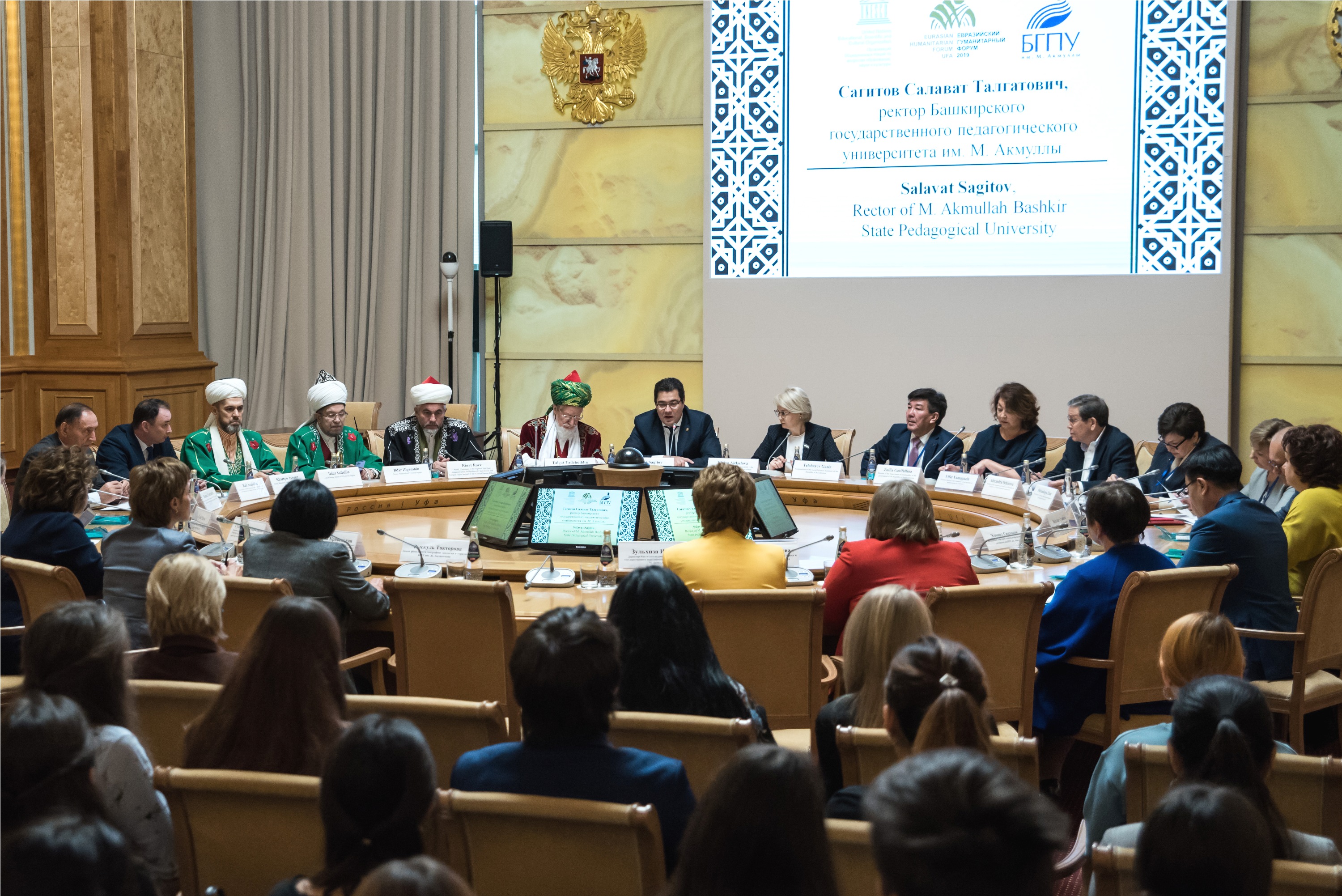 Ставший традиционным, этот форум уже в 12-й раз собрал известных ученых, религиоведов и богословов, ректоров и преподавателей исламских и светских образовательных учреждений, руководителей духовных управлений России, ближнего и дальнего зарубежья, представителей органов государственной власти и общественных организаций. Организаторы конференции: ЦДУМ России, БГПУ имени М.Акмуллы, Российский исламский университет ЦДУМ России, Администрация Главы РБ, Исламский совет по образованию, науке и культуре (ISESCO), Федерация университетов исламского мира (FUIW), Фонд поддержки исламской культуры, науки и образования. Мероприятие приурочено к 30-летию первого в постсоветском пространстве мусульманского духовного образовательного учреждения – медресе имени Ризаэтдина ибн Фахретдина, открытого в 1989 году в Уфе.