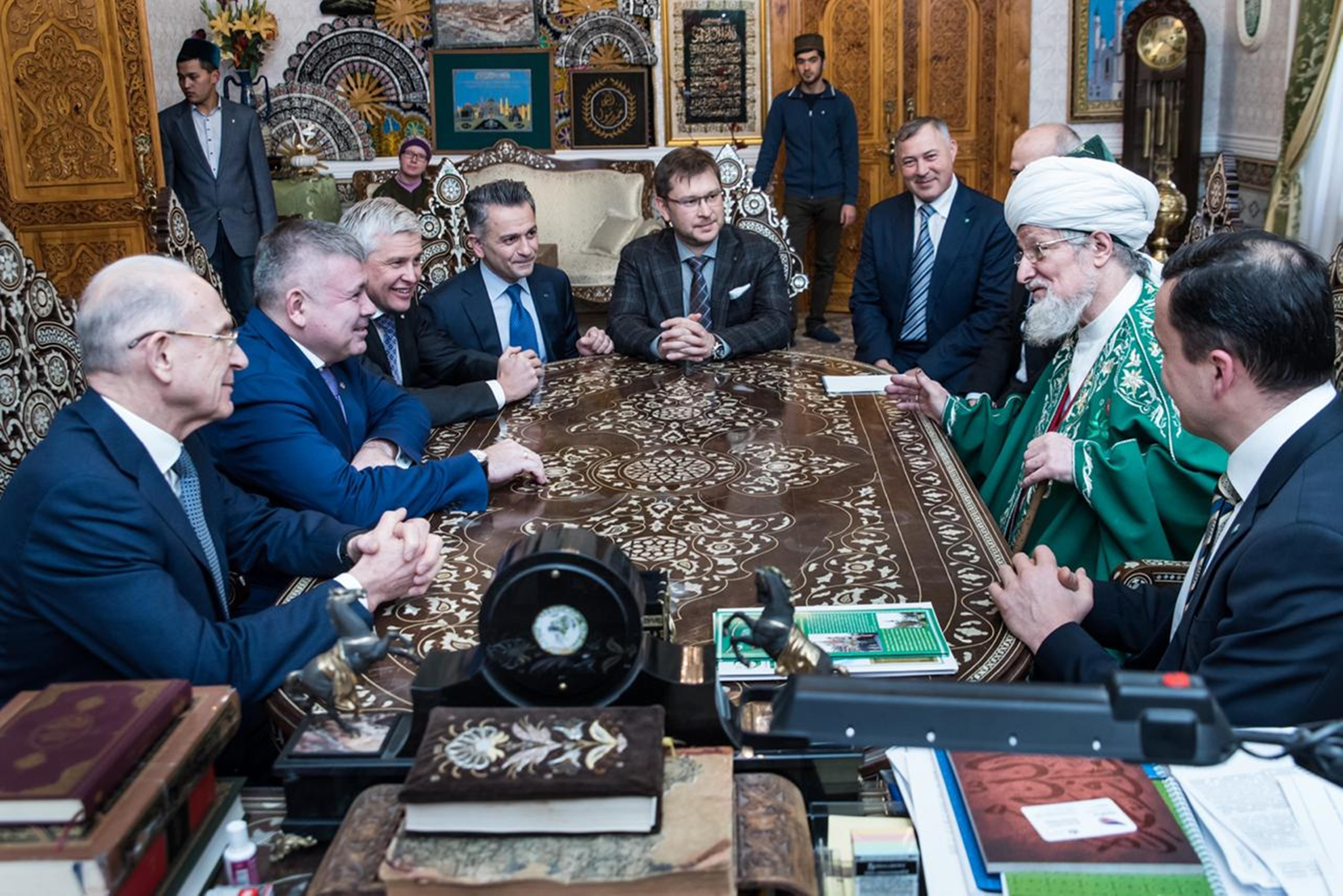 Делегаты V ежегодного заседания Группы стратегического видения «Россия – Исламский мир» – руководители Сбербанка встретились в Уфе с Шейх-уль-Исламом, Верховным муфтием, Председателем ЦДУМ России Талгатом Сафа Таджуддином. В беседе приняли участие: руководитель Администрации духовного управления, председатель РДУМ РБ, муфтий Мухаммад Таджуддинов; заместитель председателя правления Сбербанка Олег Ганеев; советник зампреда правления Гурбан-Заде Бехнам Байзад оглы; вице-президент, председатель Волго-Вятского банка Петр Колтыпин; заместитель председателя Волго-Вятского банка, управляющий отделением «Банк Татарстан» Рушан Сахбиев; председатель Уральского банка Владимир Черкашин; управляющий Башкирским отделением Марат Мансуров.