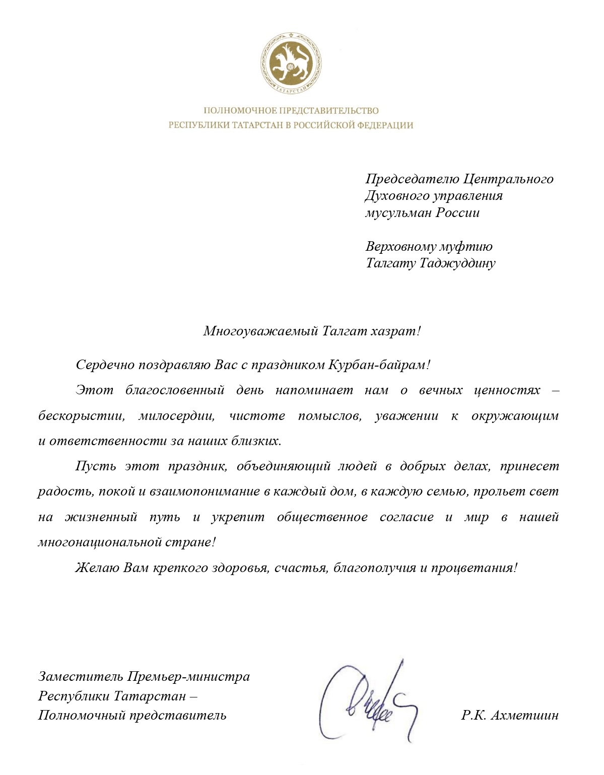 Поздравление Верховного муфтия Президенту РФ В.В.Путину с Днем народного единства    04.11.2025