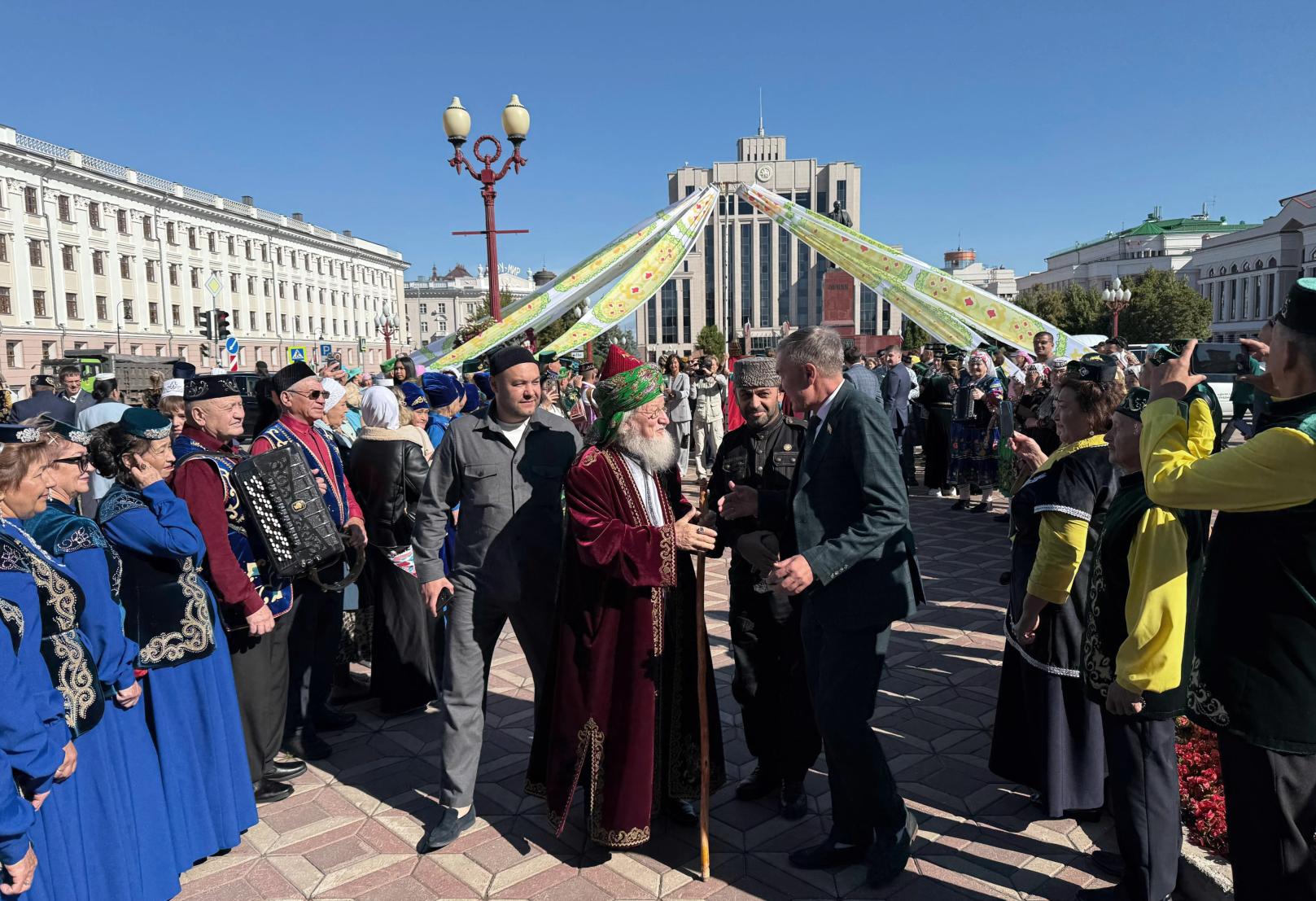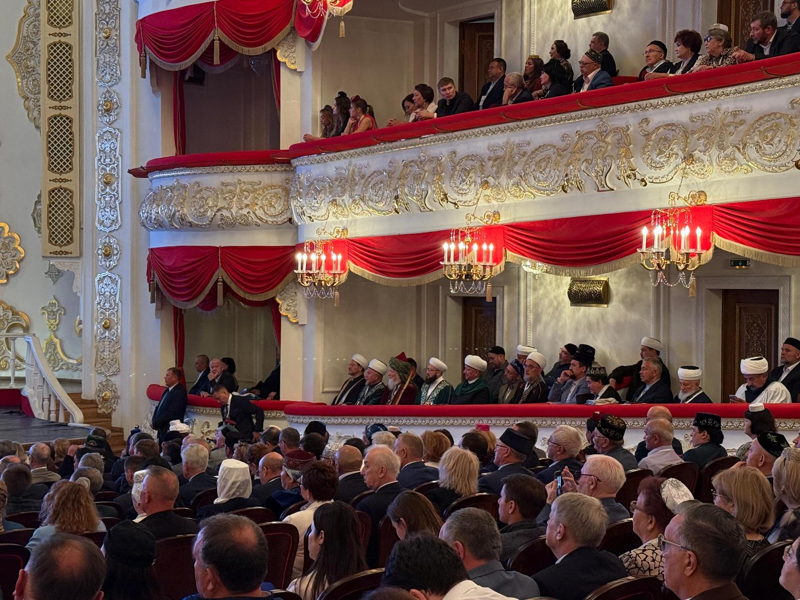 Сегодня в Татарском государственном академическом театре оперы и балета имени М.Джалиля состоялось пленарное заседание, в котором приняли участие: Раис РТ Рустам Минниханов; Государственный советник РТ Минтимер Шаймиев; заместитель Премьер-министра РТ, председатель Национального совета Всемирного конгресса татар Василь Шайхразиев; Шейх-уль-Ислам, Верховный муфтий, Председатель ЦДУМ России Талгат Сафа Таджуддин; председатель ДУМ РТ, муфтий Камиль Самигуллин и другие почетные гости.