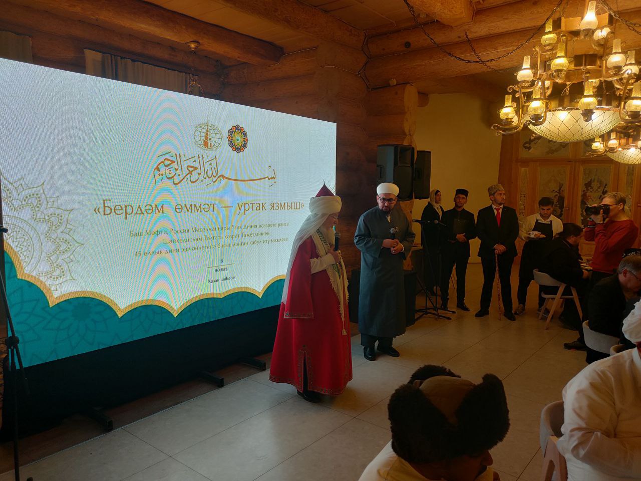 Вечером в национально-туристическом комплексе «Туган авылым» состоялся торжественный прием, посвященный 45-летию служения вере и Отечеству Верховного муфтия Талгата Сафа Таджуддина. Среди участников – председатель Высшего совета по делам Ислама в Королевстве Бахрейн Абдулрахман Мухаммед Рашид Аль Халифа; президент мусульманской общины Кералы Ибрагим Халиль Аль-Бухари (Индия); руководитель исполнительного комитета Всемирного конгресса татар Данис Шакиров и другие гости из стран ближнего и дальнего зарубежья, представители региональных духовных управлений, соратники Верховного муфтия. Мероприятие началось с чтения Священного Корана. Шейх-уль-Ислам на арабском языке рассказал о том, как свет Ислама распространился из Волжской Булгарии по территории нашей страны, и о том, как сегодня живут отечественные мусульмане. Концертная программа состояла из выступлений мастеров искусств и самодеятельных коллективов Татарстана. В многочисленных поздравлениях звучали слова признательности Верховному муфтию – признанному духовному лидеру, имеющему огромный авторитет в России и во всём мире.