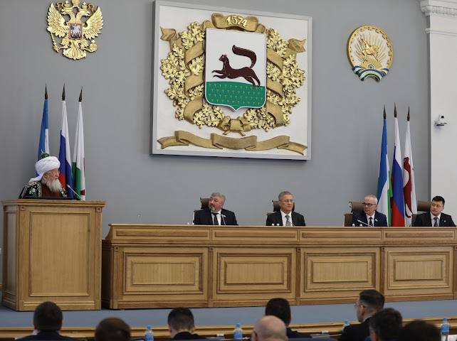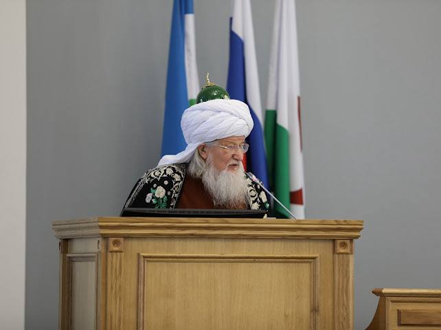 Шейх-уль-Ислам Талгат Сафа Таджуддин обратился к участникам заседания: «Сердечно приветствую вас всех в этот день накануне Рамазана приветствием, которое произносит всю жизнь верующий человек: Ассаляму алейкум ва рахматуллахи ва баракятух! Мир вам, благодать Всевышнего и содействие всю жизнь, и счастье вечного мира. Благодарю вас за это решение… Здесь сейчас говорили, что я уже 45 лет – уфимец. До этого в Казани 32 года, часть моей жизни был имамом единственной мечети; и в Уфе тогда была одна мечеть, а по всему духовному управлению – 94, по Советскому Союзу – 340. Сегодня только в России – 8 тысяч мечетей, альхамдулиЛлях! В Башкортостане было 16, в Татарстане 15 мечетей, а сегодня – по полторы тысячи. И православных храмов, и храмов других конфессий… Но главное не это, потому что весь земной шар (кроме бани и кладбища) – это храм Божий, так говорил Пророк Мухаммад (с.а.с.). Везде мы можем молиться! Главное – мир и согласие, межконфессиональное и межнациональное, мы сохранили и укрепляем день ото дня. И главное доказательство тому, что мы живём по-Божески, нормально и правильно, здравым образом жизни, – это то, что наши воины тысячами и тысячами защищают независимость и суверенитет, достойный выбор жизни участием в специальной военной операции. И сегодня не только наши джигиты, не только парни, но и имамы и православные священники бок о бок с нашими воинами – постоянно, денно и нощно вместе с ними. Мы издали 35 тысяч молитвенников, и каждый воин его получил. Мы не сомневаемся, что наша страна победит! Потому что отстаиваем не только землю и суверенитет, а выбор, важнейший в жизни человека, – с Богом он или с дьяволом. Там это решается… Дай Всевышний решить все проблемы, которые стоят перед каждым человеком, перед республикой, перед страной, перед человечеством! Идёт противостояние, и вопрос в том, с кем ты? И кем ты являешься в этом мире?».