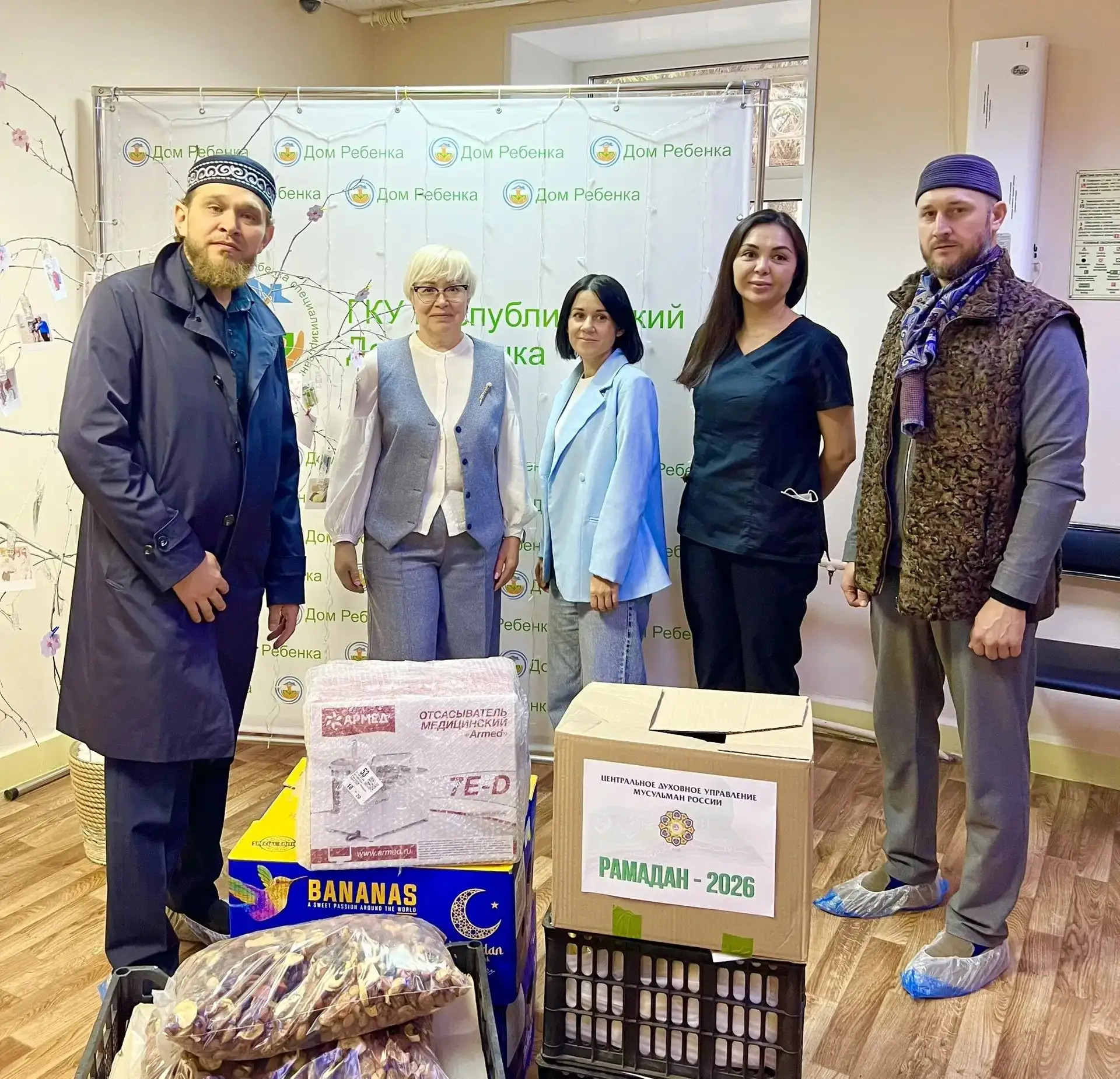 Особое чувство у всех вызвало посещение специализированного Республиканского дома ребёнка, где находятся 58 сирот и оставшихся без попечения родителей. Сотрудники учреждения делают всё возможное, чтобы у них было нормальное детство, но тяжело осознавать, что эти малыши лишены самого главного – родительской любви. В рамках акции сюда доставили подарки от ЦДУМ России – несколько ящиков фруктов, также приобретён современный назальный аспиратор.