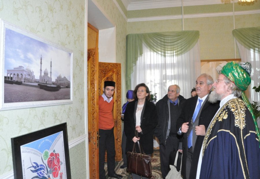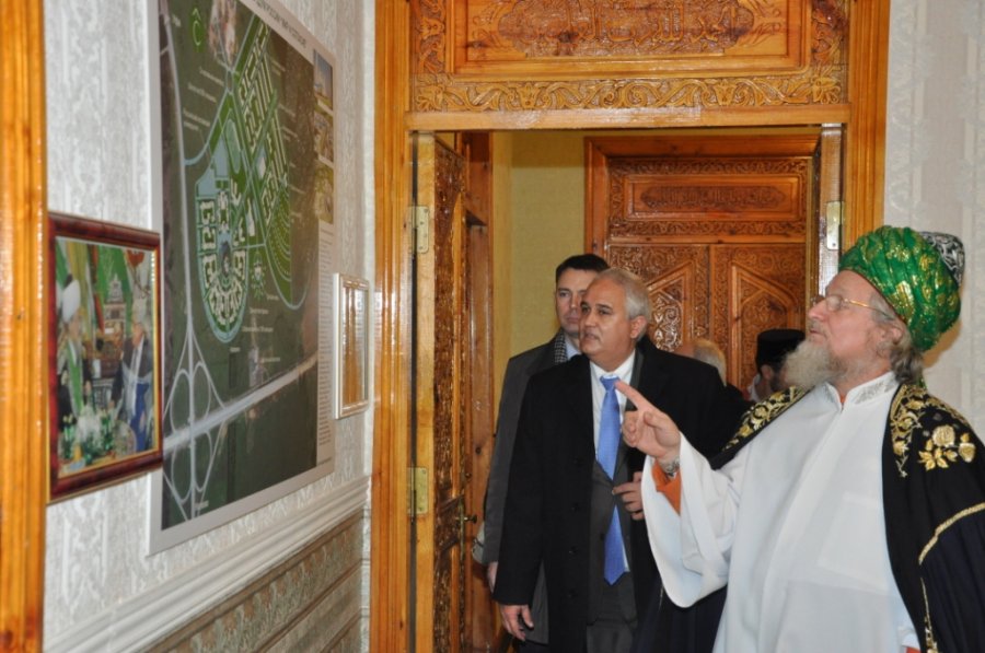 Верховный муфтий провел экскурсию по зданию ЦДУМ России, у фотографии Великих Булгар посол выразил желание посетить в будущем году эту святую землю.