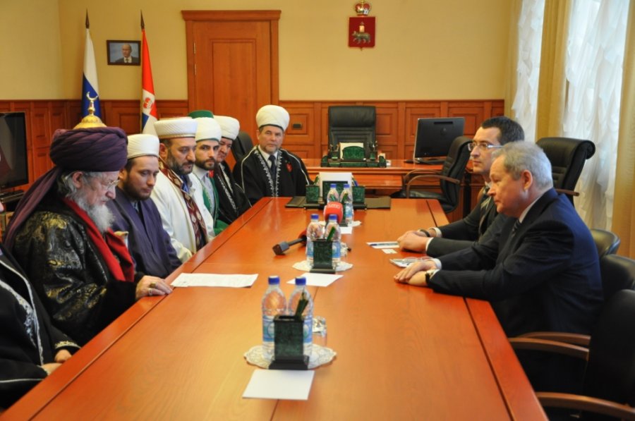 Перед началом торжественной части делегация ЦДУМ России во главе с председателем организации Талгатом Сафа Таджуддином встретилась с губернатором Пермского края В.Ф.Басаргиным. На совещании были обсуждены вопросы сотрудничества между духовенством и Администрацией г.Перми. В.Ф.Басаргин поблагодарил Верховного муфтия за выбор Пермского края в проведении форума «Мусульманский мир», отметив особую важность данного мероприятия в укреплении межрелигиозных и межконфессиональных отношений как в регионе, так и в стране в целом. Между «прикамским» муфтиятом и руководством Пермского края были намечены планы дальнейшего сотрудничества.
