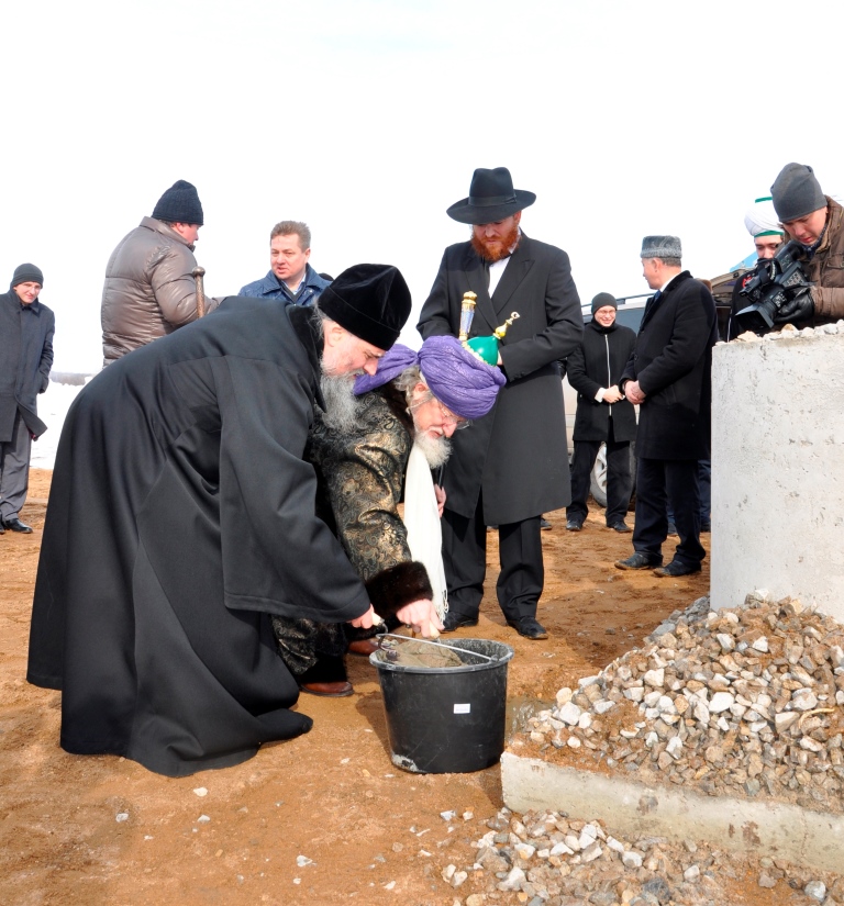 Уникальное событие состоялось в новом микрорайоне «Майбург» коттеджного поселка 8 Марта Ленинского района города. Торжественное благословение на строительство храмов дали Верховный муфтий Талгат Сафа Таджуддин, Митрополит Уфимский и Стерлитамакский Никон и Главный раввин Башкортостана Дан Кричевский. Также присутствовали другие представители духовенства трех мировых религий.
