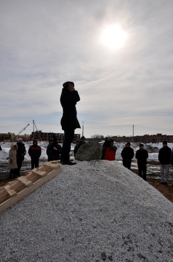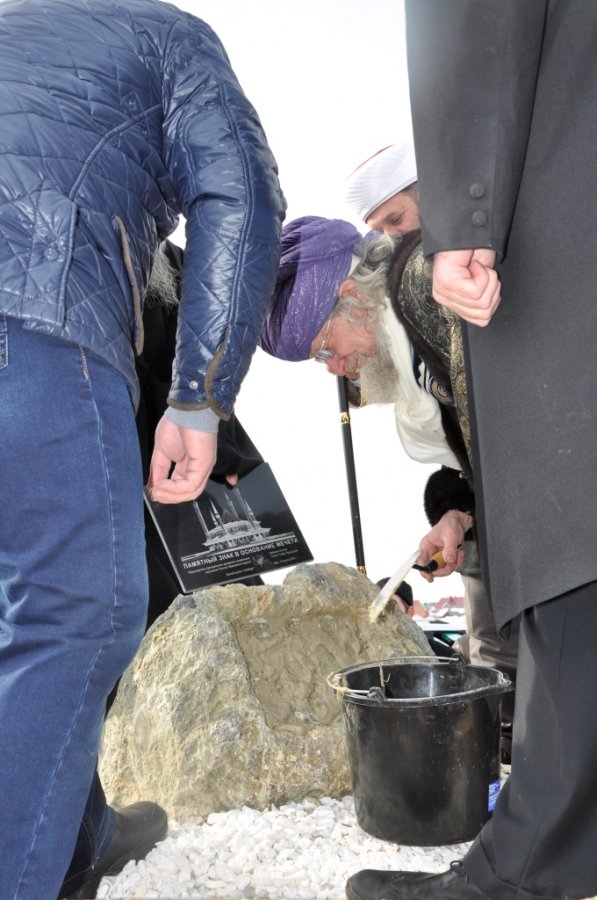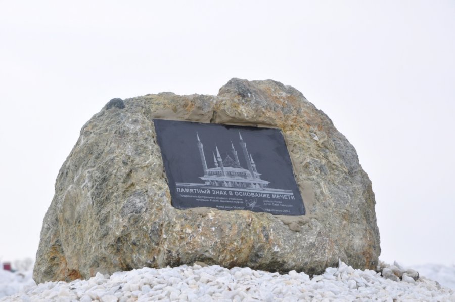 При закладке камня в основание мечети прозвучал первый азан, после которого собравшиеся мусульмане во главе с Председателем ЦДУМ России совершили намаз. Надо отметить, что в проектировании исламского храма принимал участие сам Талгат Таджуддин. Изображение будущей мечети с шестью минаретами нанесено на памятной доске, установленной на месте возведения.