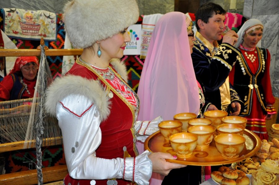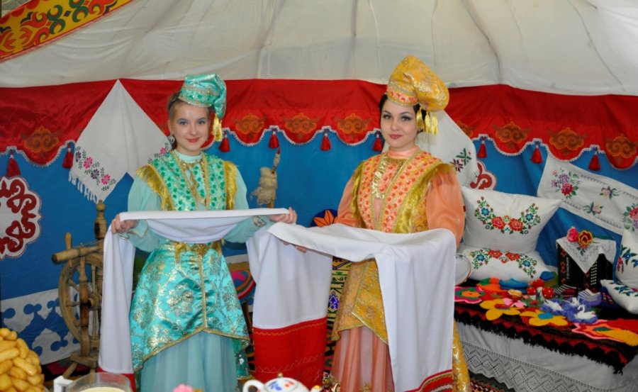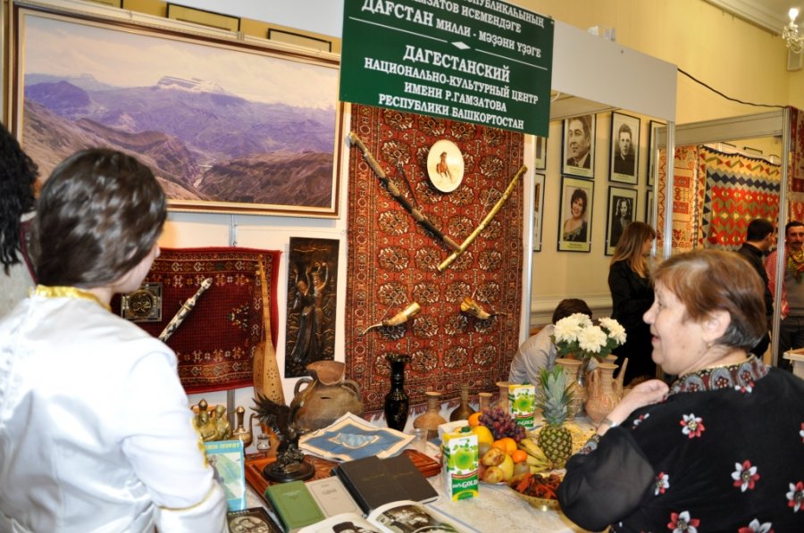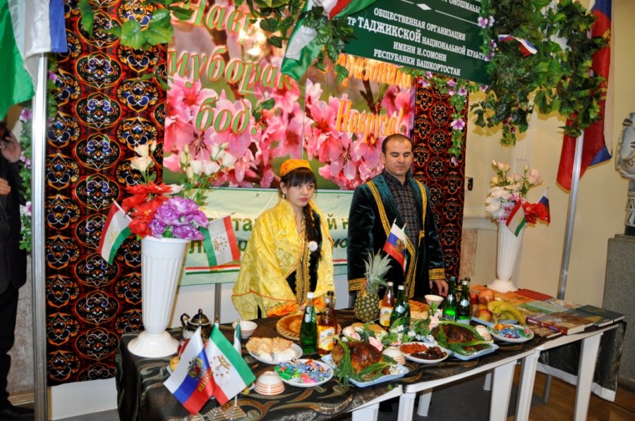 Праздник начался в фойе концертного зала, здесь всех участников вечера встречали «этнические» палатки тюркских и ираноязычных диаспор, проживающих в республике. В них были представлены выставки-ярмарки народного творчества и традиционных ремесел, дегустация блюд национальной кухни разных народов.