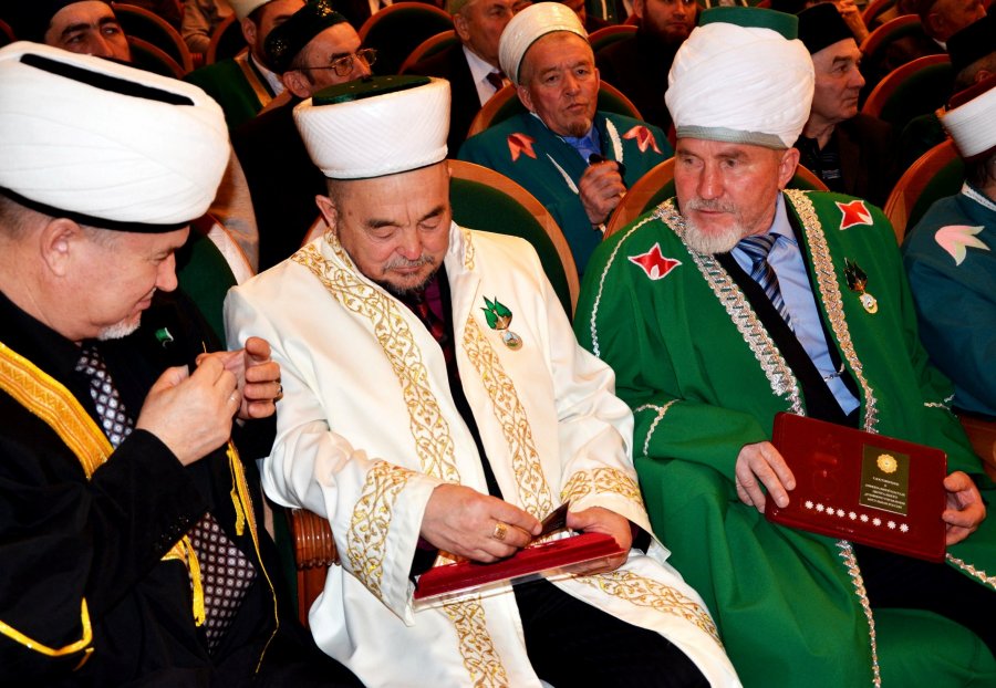 Обращаясь к собравшимся с приветственным словом, глава российской уммы поздравил с юбилеем оренбургский муфтият и поблагодарил за честную благородный труд. За многолетнюю и безупречную службу во благо Веры и Отечества, большой вклад в духовно-нравственное возрождение общества, сохранение исторического и духовного наследия наших благословенных предков, укрепление мира, согласия и доброго сотрудничества между народами и последователями традиционных конфессий России Талгат Таджуддин наградил муфтия Барыя Хайруллина медалью ЦДУМ России «Мухаммад Расулуллах». Высокой награды были удостоены: директор медресе «Хусаиния» Альфит Шарипов (медаль «Аль-Игтисам» – «Сплоченность» степени «Гусман бин Гаффан радыяллаhу’анhу»), члены Президиума ЦДУМ России имам-мухтасибы Ахмат Абузяров, Советбек Айжанов, Рафаиль Файзуллин (медали «Аль-Игтисам» – «Сплоченность» степени «Гали бин Аби Талиб радыяллаhу’анhу»).