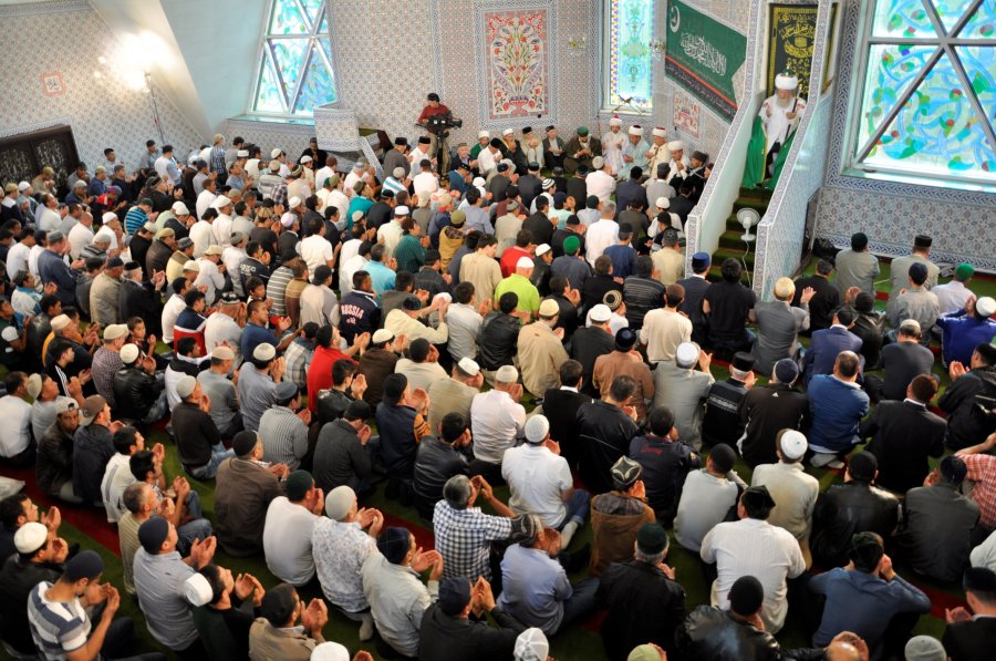 В Соборной мечети Уфы «Ляля-Тюльпан» тысячи верующих пришли послушать торжественное богослужение Верховного муфтия и всем вместе совершить намаз.