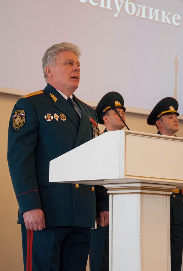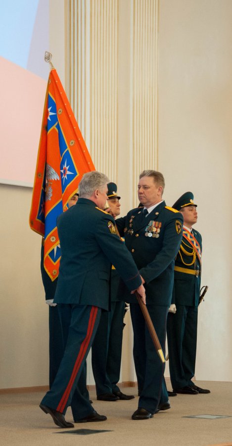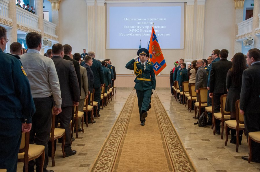 Торжества состоялись в Колонном зале Министерства сельского хозяйства республики. Начальник Приволжского регионального центра МЧС России генерал-полковник внутренней службы Игорь Паншин вручил официальную реликвию ведомства – знамя – начальнику Главного управления МЧС России по РБ полковнику внутренней службы Марату Латыпову.