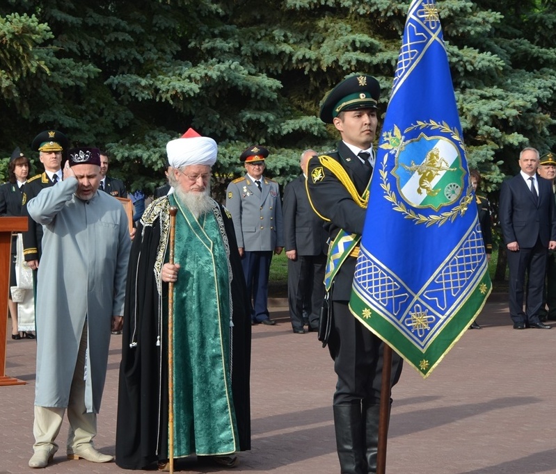 С приветственным словом выступил Верховный муфтий: «Дорогие участники! От имени Центрального духовного управления мусульман России сердечно поздравляю вас с вручением этого знамени. Это непросто знамя, а символ доверия главы нашего государства и оно олицетворяет и вас, и нашу страну. В любом государстве есть флаг, порядок и развитие страны требуют этого. Мы в священных книгах видим, что так было всегда. Некоторые меняют и флаги, и погоны. Но этот флаг выражает доверие народа и президента нашей страны. Это символ и реликвия. Вы каждый день в ходе своей деятельности будете претворять в жизнь очень непростые судебные решения. Берегите знамя, вашу честь и славу нашей Отчизны»!