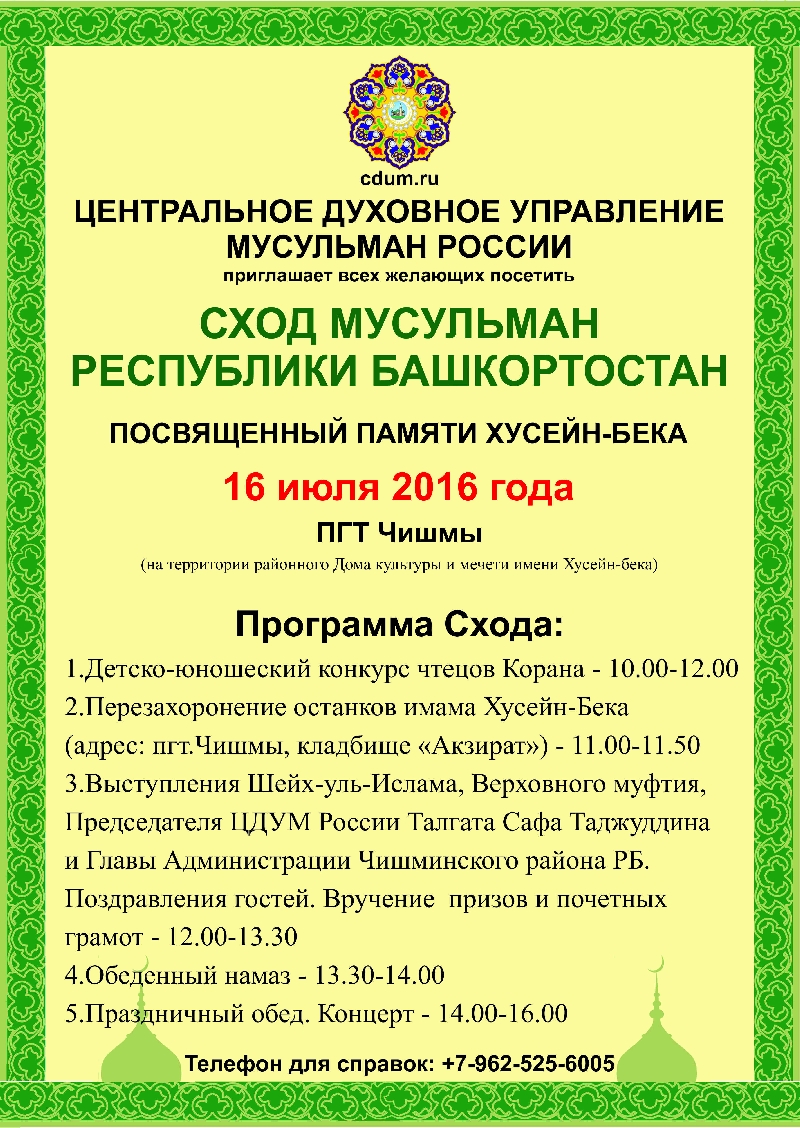 Сход мусульман Республики Башкортостан пройдет 16 июля 2016 года в пгт.Чишмы