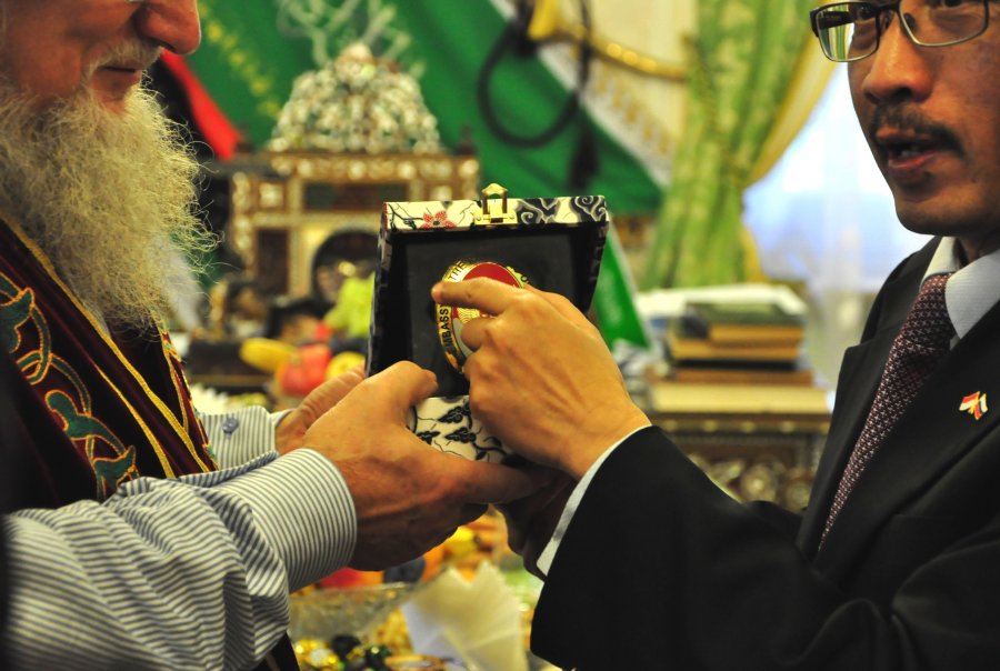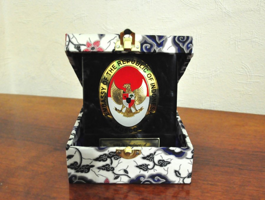 Талгату Таджуддину был вручен памятный сувенир с изображением государственной символики Республики Индонезия.