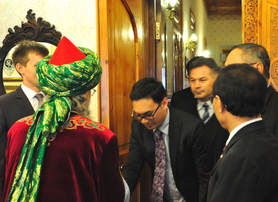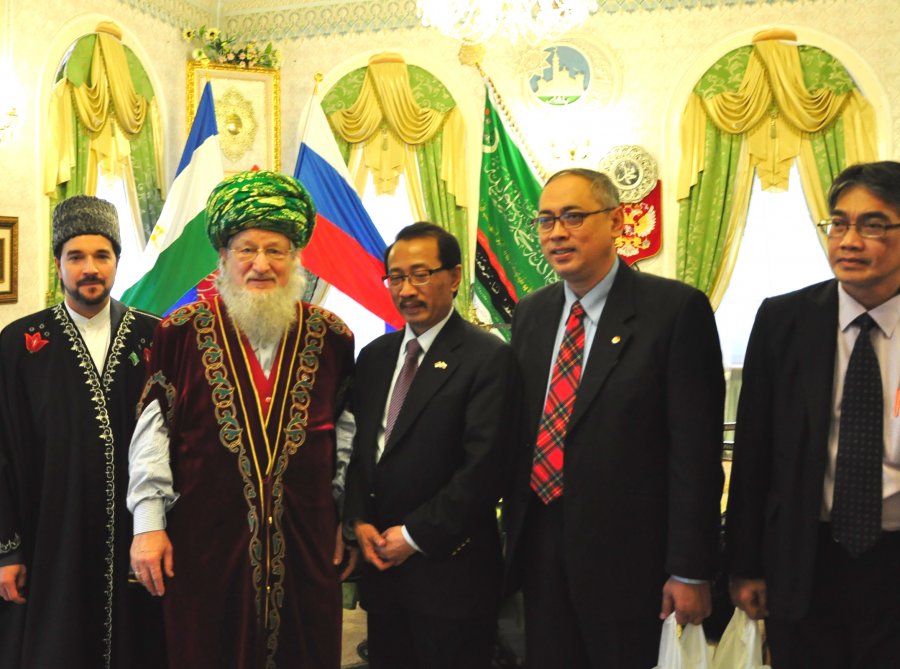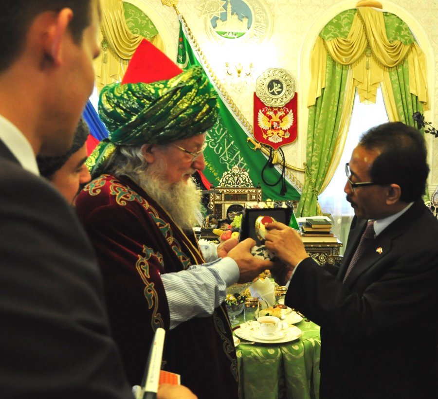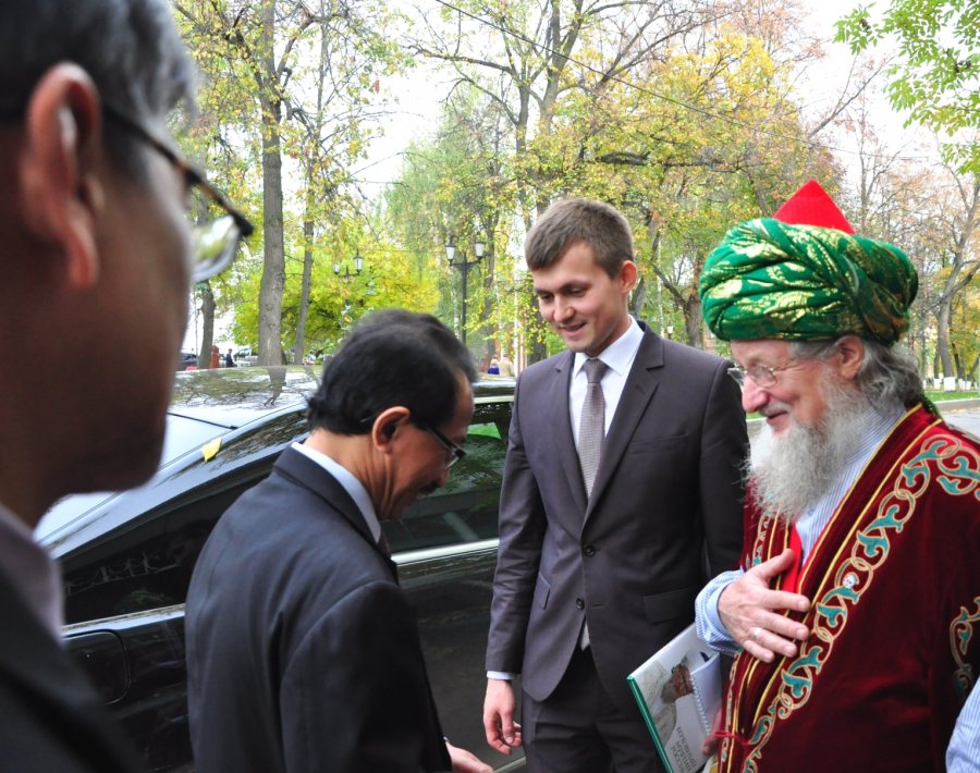 Шейх-уль-Ислам, Верховный муфтий, Председатель ЦДУМ России Талгат Сафа Таджуддин тепло приветствовал высоких гостей: «Мы очень рады встрече с вами и надеемся, что взаимоотношения, основанные на дружбе и братском сотрудничестве наших государств, с каждым годом будут расширяться и укрепляться». Глава российской уммы поделился историей появления мусульман на территории РФ: уже в 310 году по Хиджре (в июне 922-го по григорианскому календарю) волжские булгары приняли Ислам. Благодаря образованию Оренбургского магометанского духовного собрания, созданного по Указу Императрицы Екатерины II от 22 сентября 1788 года, приверженцы исламской религии получили общероссийский духовный центр, правопреемником которого ныне является ЦДУМ России.