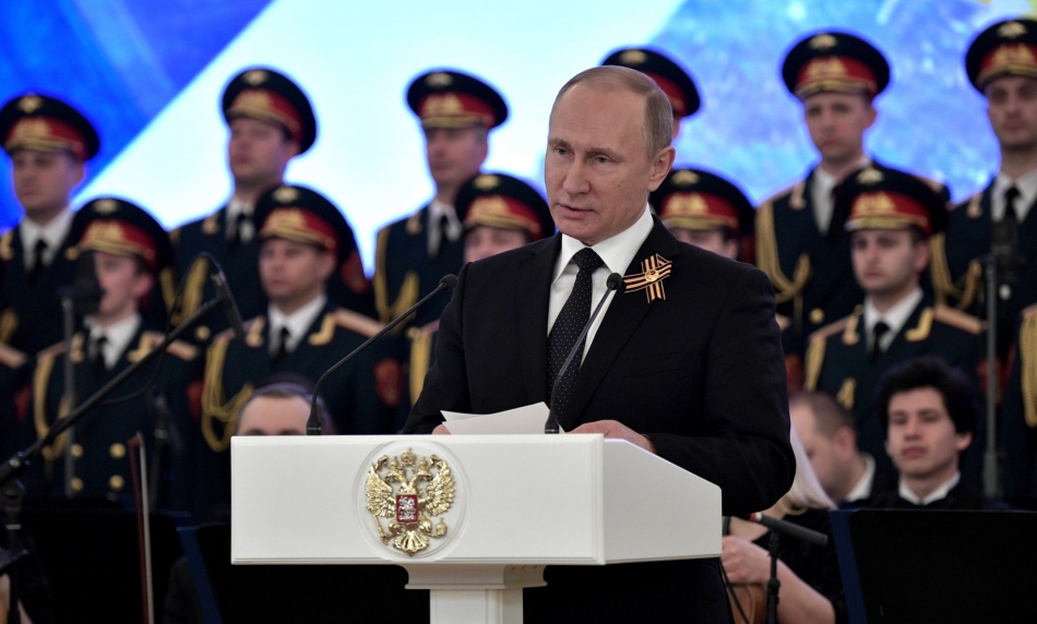 Выступая перед собравшимися, Президент России Владимир Владимирович Путин поздравил всех граждан России с Днем Победы, «с праздником, величие которого определил сам народ своим беспримерным подвигом спасения Отечества и героическим, решающим вкладом в разгром нацизма». Почтив память павших минутой молчания и высказав слова благодарности всем, кто сберег Отчизну, глава государства отметил: «Уроки прошедшей войны призывают нас быть бдительными. И Вооруженные Силы России способны отразить любую потенциальную агрессию. Сегодня сама жизнь требует повышать наш оборонный потенциал. Но для эффективной борьбы с терроризмом, экстремизмом, неонацизмом, другими угрозами необходима консолидация всего международного сообщества. Мы открыты для такого сотрудничества. Россия всегда будет на стороне сил мира, с теми, кто выбирает путь равноправного партнерства, кто отрицает войны как противные самой сути жизни и природе человека».