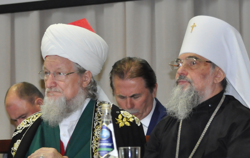 В своем выступлении Талгат Таджуддин напомнил, что ни одна религия не противопоставляет людей по цвету кожи, национальности или вероисповеданию, и все посланники Божьи учили одному: возлюби ближнего. Поэтому суть экстремизма, являющегося основой международного терроризма, – сатанинская. «Наша страна дает огромнейший пример для всего человечества: 193 народа, больших и малых, вместе с великим русским народом создали по Божьей воле такую державу, где все традиционные конфессии сотрудничают веками. Сколько у нас смешанных семей! Чтим друг друга, вместе отмечаем праздники, понимаем, что Бог один и Отчизна у нас одна. И от нашего сотрудничества, любви и взаимного уважения зависит судьба наших детей и внуков и следующих поколений, вплоть до Судного дня. А Судный день тем дальше, чем более мирно и спокойно мы будем жить! Именно поэтому считаю важнейшей обязанностью и долгом сотрудничество с органами власти нашей страны, с религиозными организациями и духовными центрами традиционных конфессий, прежде всего, с Русской Православной Церковью», – сказал Верховный муфтий. Рассуждая о том, почему первый удар экстремистских идей направляется на молодое поколение, Шейх-уль-Ислам с горечью заметил: «Семьдесят-восемьдесят лет наша молодежь была оторвана от познания своей религии. В Башкортостане еще 30 лет назад было всего 16 мечетей. Сейчас, слава Богу, почти 1200. Но в общинах около 70% духовенства – люди преклоннейшего возраста. В ближайшие годы встанет проблема кадров… Кто будет работать с прихожанами в тысячах мусульманских общин? Вот почему сегодня работа с молодежью особенно важна для нас. Сердечно благодарим Башкирский педагогический университет, с которым сложилось и устоялось доброе сотрудничество в плане подготовки мусульманского духовенства. Во время встречи с Владимиром Владимировичем Путиным мы обсуждали проблему подготовки кадров, чтобы увеличить число студентов в Российском исламском университете. Если мы не подготовим за ближайшие 5-7 лет достойные кадры, которые бы сохраняли традиционный ислам и противостояли радикальным течениям, то их места в мечетях займут тысячи подготовленных за рубежом – тех, кто ведет сейчас подпольную работу. Это будет большая беда, и ИГИЛ покажется «цветочками» по сравнению с ней. И кто за это ответит? Слава Богу, мы – великая держава, и никто в истории не смог покорить ее. Беречь духовную безопасность Отечества – наша задача!»