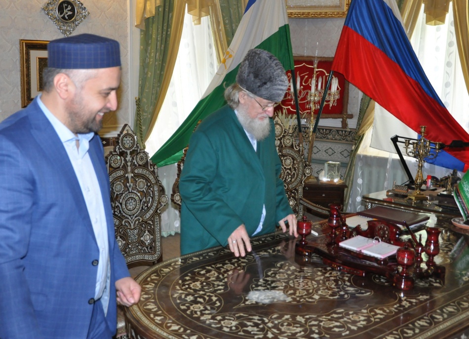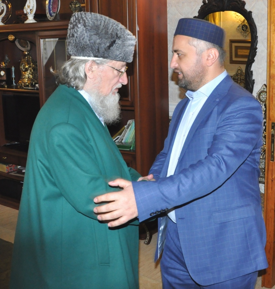 Священный месяц Рамазан в этом году начался с ряда важных событий. Вслед за визитом членов Комитета по развитию гражданского общества, вопросам общественных и религиозных объединений Госдумы РФ состоялась встреча Шейх-уль-Ислама, Верховного муфтия, Председателя ЦДУМ России Талгата Сафа Таджуддина и первого заместителя муфтия Республики Дагестан Ахмада Кахаева. В дружеской обстановке обсуждались вопросы взаимодействия старейшего мусульманского центра страны с дагестанским муфтиятом, в первую очередь, в вопросах духовного образования. От имени муфтия Дагестана высокий гость пригласил Талгата Таджуддина в свою республику провести пятничную молитву. Во время беседы поднимались проблемы укрепления единства мусульман России и профилактики экстремизма. Шейх-уль-Исламу был вручен памятный подарок (настольный органайзер), в ответ Талгат Таджуддин подарил книги о 225-летии ЦДУМ России и 65-летии Верховного муфтия и юбилейный выпуск газеты «Маглюмат аль-Булгар». Далее Ахмад Кахаев посетил Российский исламский университет.