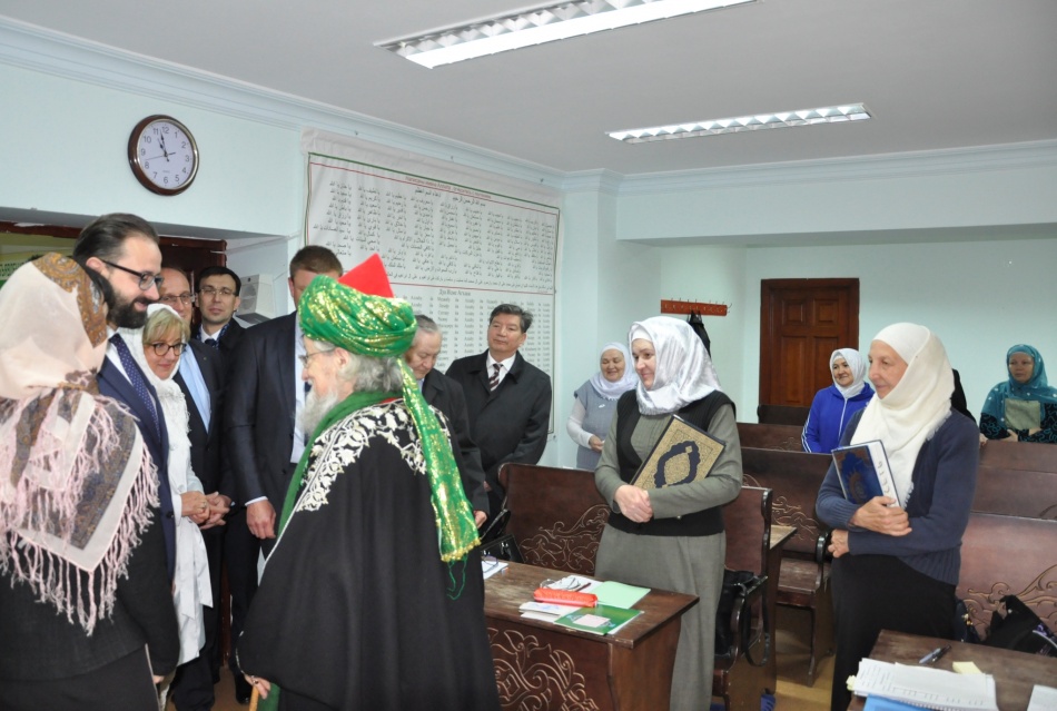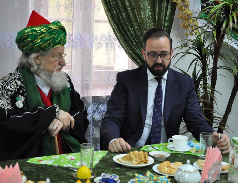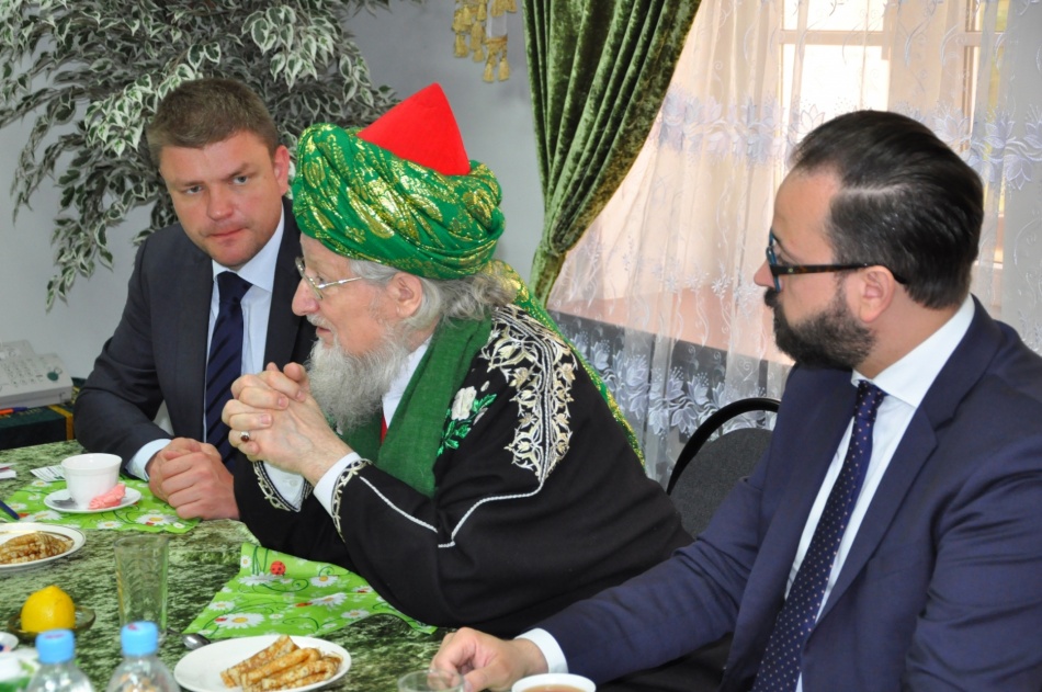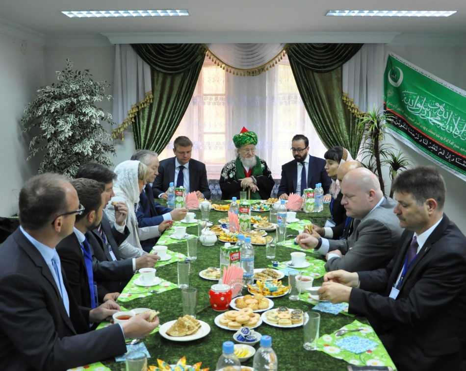 Зарубежных гостей, замерзших на холодном уфимском ветру, тепло встретили в Соборной мечети «Ляля-Тюльпан». Верховный муфтий пригласил гостей отведать блинов с медом, напомнив, что сейчас идет Священный месяц Рамазан и мусульмане держат Пост, и, возможно, когда он закончится, придет долгожданная жара. Талгат Таджуддин кратко обрисовал историю мусульманской религии в нашей стране: как сподвижники Пророка Мухаммада (с.а.с.) пришли на берега Волги для распространения новых знаний, и в 922 году Волжская Булгария приняла Ислам в качестве государственной религии. Произошло это за 66 лет до крещения Киевской Руси. «Ислам и Православие – это основы нашего государства. Все эти века живем в мире и в согласии, во взаимном уважении, 193 больших и малых народа. В Башкортостане, например, около 30 процентов семей – смешанные браки. Радости и горести Отчизны делим вместе, дети вместе учатся, и хлеб растим, и на заводах работаем… Восстановить духовное наследие, которое накопилось в веках, – вот наша задача. А жить так нам помогает правильное понимание религии. Ведь религии должны объединять людей, учить милосердию, взаимопониманию, чтобы мы любили друг друга. То, что сейчас происходит в мире, экстремизм и терроризм – этого не может быть в Божественной религии. Никогда! Эти вещи искусственно придуманы сатанинскими силами, которые хотят натравить нас друг на друга».