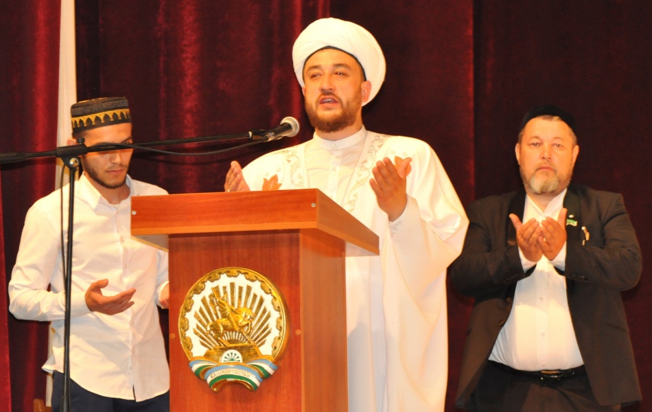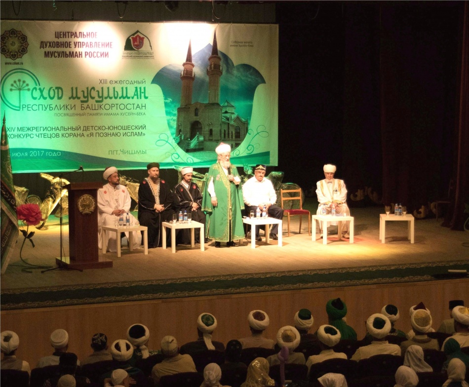 После коллективной молитвы у стен мавзолея торжество продолжилось на площадках Дома культуры, где участники конкурса с нетерпением ждали награждения. В начале церемонии глава Администрации Чишминского района Флюр Зиннурович Уразметов приветствовал участников съезда на благодатной земле, откуда почти 700 лет назад началось распространение Ислама в нашей стране. Советник по вопросам религиозного образования Совета по государственно-конфессиональным отношениям при Главе Башкортостана Руслан Карамышев заметил: «Сегодняшнее событие объединяет прошлое, настоящее и будущее традиций духовной культуры нашего народа». Верховный муфтий в своем обращении к детям живо и эмоционально рассказал о том, кто такие пророки и посланники Всевышнего: «Это дети разных матерей, но вера у них одна, как и Бог один и един. Все посланники, от Адама до Пророка Мухаммада (с.а.с.), ушли в мир вечности. Они учили людей добру и любви, чтобы мы жили, как братья и сестры. Сейчас вас учат родители и имамы, и они тоже хотят, чтобы мы жили в мире и согласии. Почитайте родителей и учителей!» Приятным сюрпризом стала прямая телефонная линия с потомком Пророка Мухаммада (с.а.с.) в 41-м поколении, профессором Амманского международного университета исламских наук, шейхом Абдурраззаком Ассаиди, который поздравил участников Схода мусульман Республики Башкортостан с благословенным праздником.