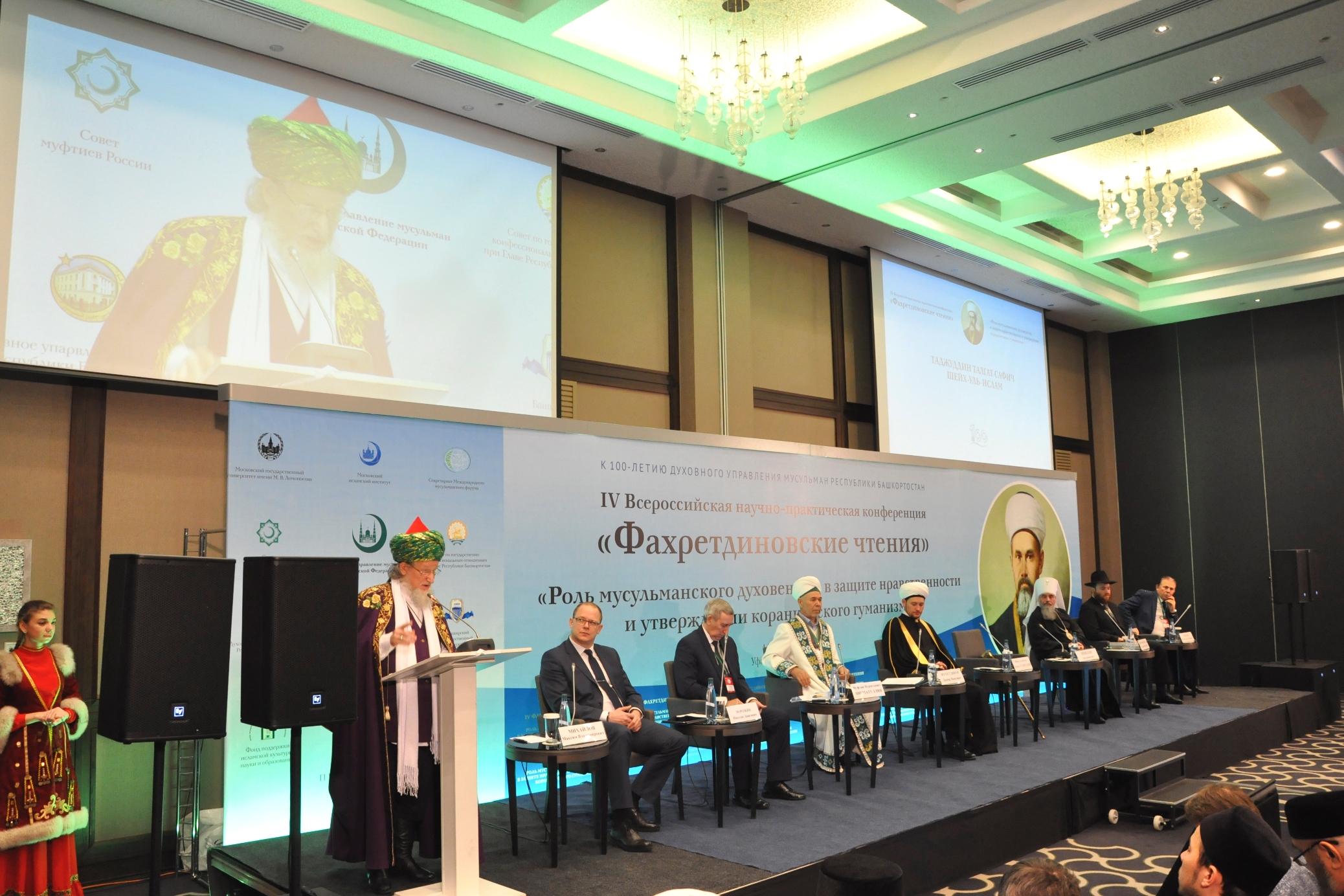 В Уфе прошли торжества, приуроченные к славной дате: 100 лет назад, в революционной обстановке 1917 года, было учреждено Духовное управление мусульман Башкурдистана. Много важных дел на счету этой религиозной организации, внесшей большой вклад в духовно-нравственное воспитание и просвещение жителей республики, однако в 1936 году, в пору репрессий, муфтият упразднили. Только в 1992 году он был воссоздан, и сегодня его правопреемником является Духовное управление мусульман РБ, а бессменным председателем – муфтий Нурмухамет Нигматуллин. В честь двух юбилейных дат в столице Башкортостана состоялись мероприятия, одно из которых – IV Всероссийская научно-практическая конференция «Фахретдиновские чтения» на тему «Роль мусульманского духовенства в защите нравственности и утверждении коранического гуманизма».